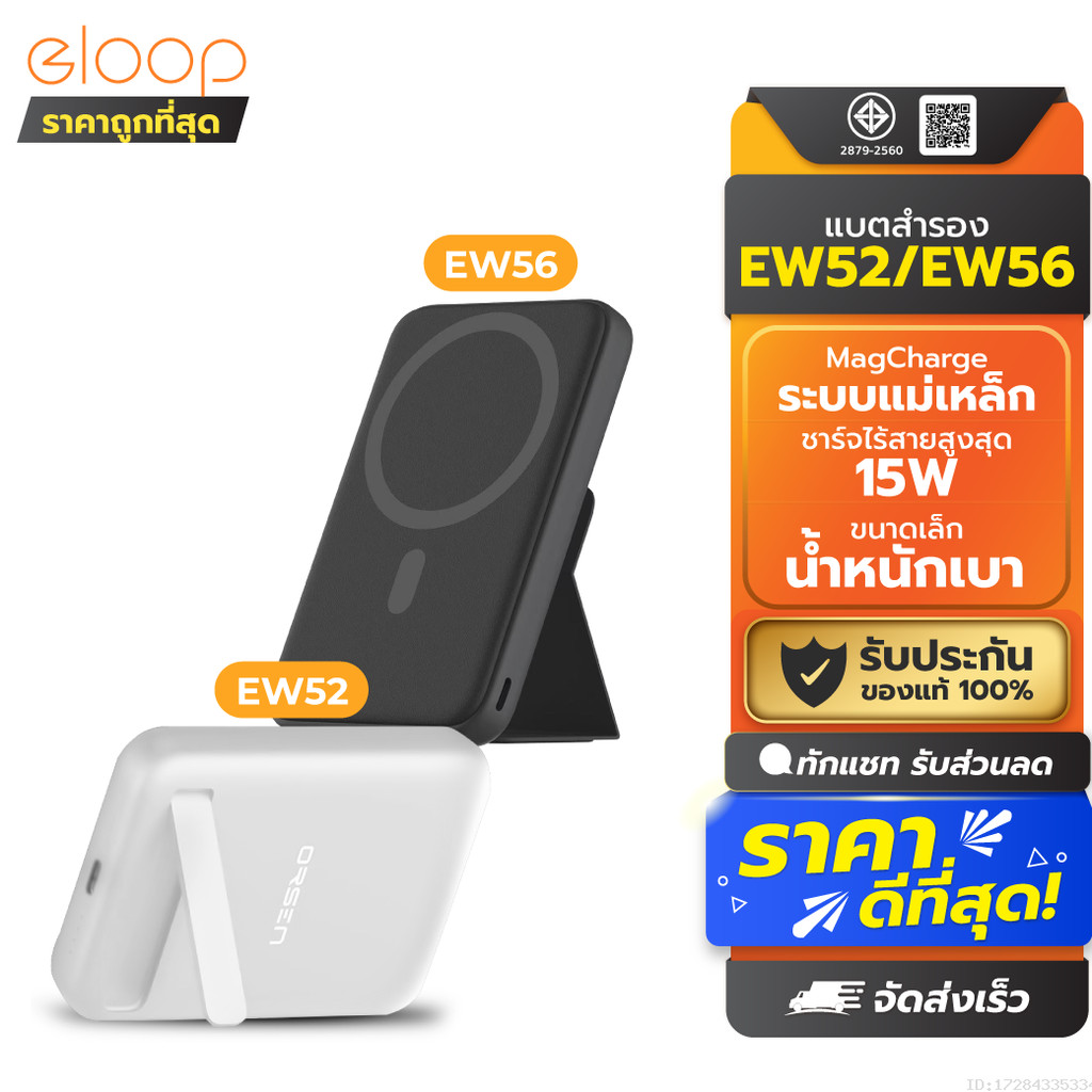 [468บ.ช้อปคุ้ม] Orsen by Eloop EW52 / EW56 แบตสำรองไร้สาย 10000mAh / 7000mAh MagCharge PowerBank พาวเวอร์แบงค์