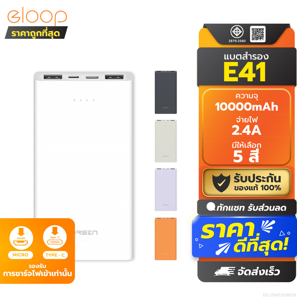 [195บ.ช้อปคุ้ม] Orsen by Eloop E41 แบตสำรอง 10000mAh ชาร์จเร็ว 2.4A 12W Powerbank พาวเวอร์แบงค์ USB Type C