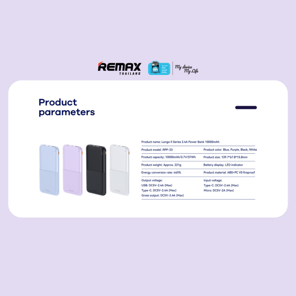 [ CCC ] Remax Power Bank 10000mAh (RPP-23) – แบตสำรอง พกพา type c output ขนาดบาง กะทัดรัด