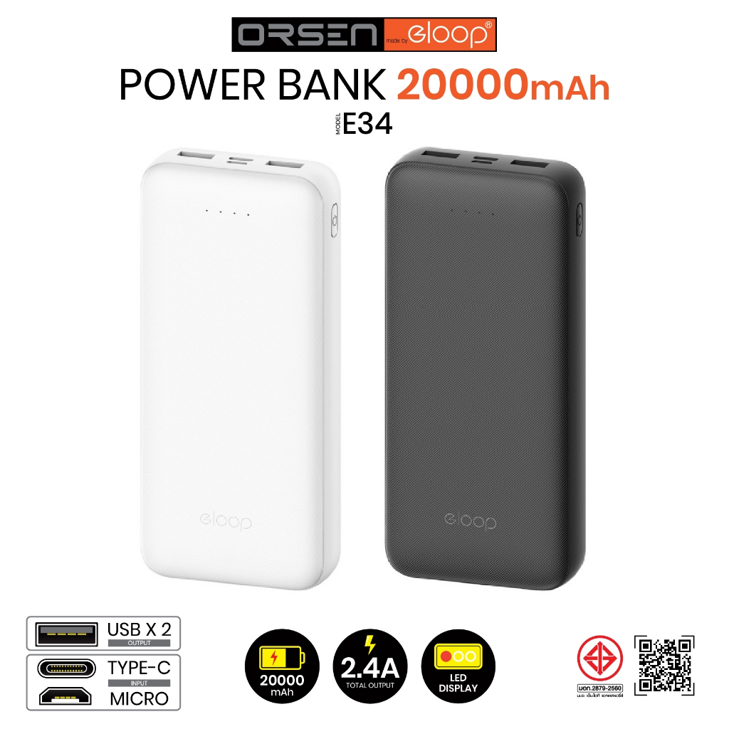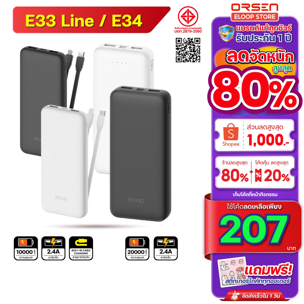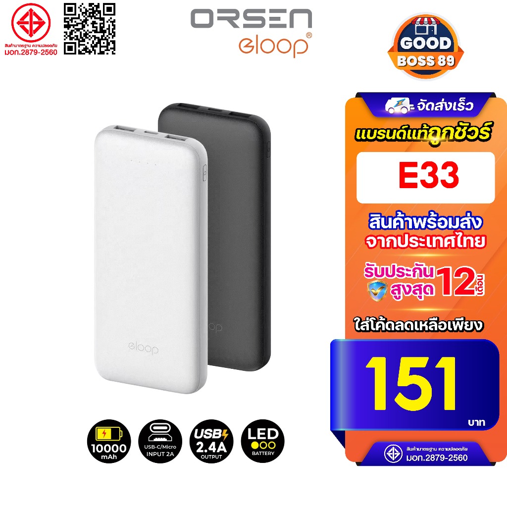 [129บ. โค้ดคุ้ม] Orsen Eloop E33 E34 แบตสำรอง Power Bank แบตสำรอง เพาเวอร์แบงค์ Power Bank