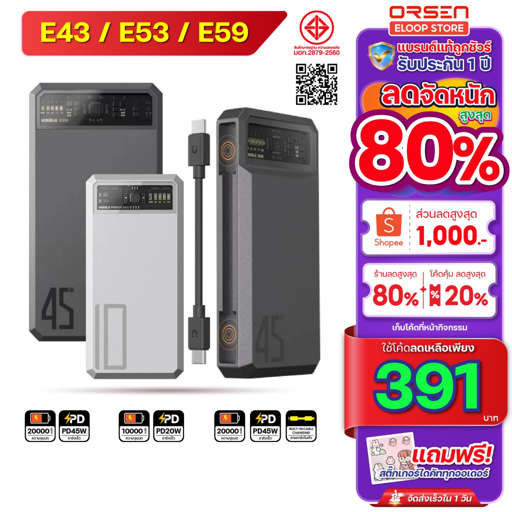 [391บ. โค้ดคุ้ม] Orsen Eloop รุ่น E43 E53 E59 แบตสำรอง ชาร์จเร็ว 10000-25000mAh PD พาวเวอร์แบงค์