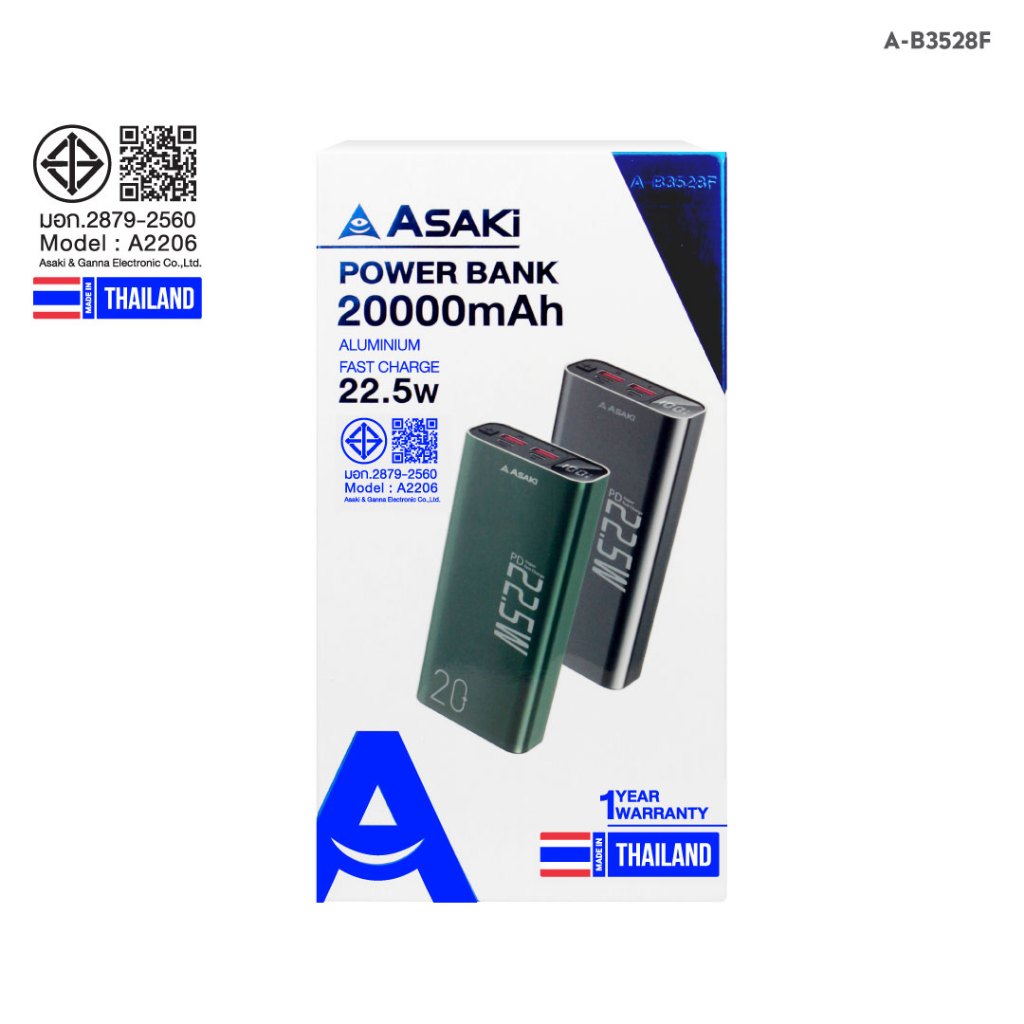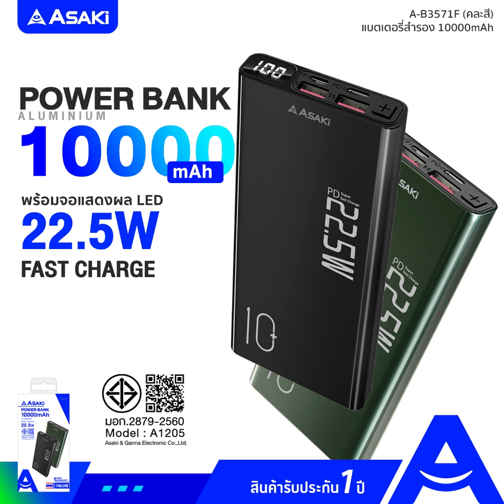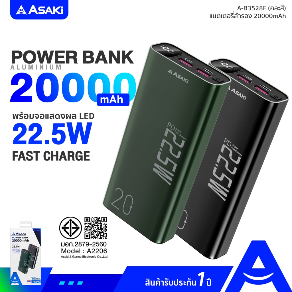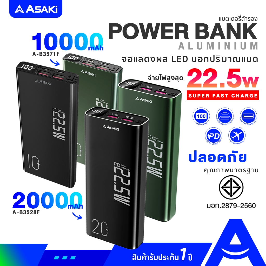 Asaki PowerBank พาวเวอร์แบงค์ 10000 / 20000mAh ชาร์จเร็ว 22.5W มีมอก. จอ LED บอกปริมาณแบต รุ่น A-B3571F ประกัน 1 ปี