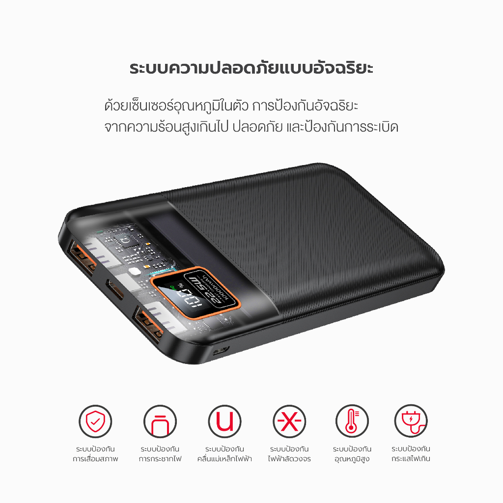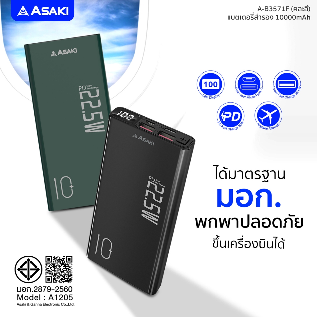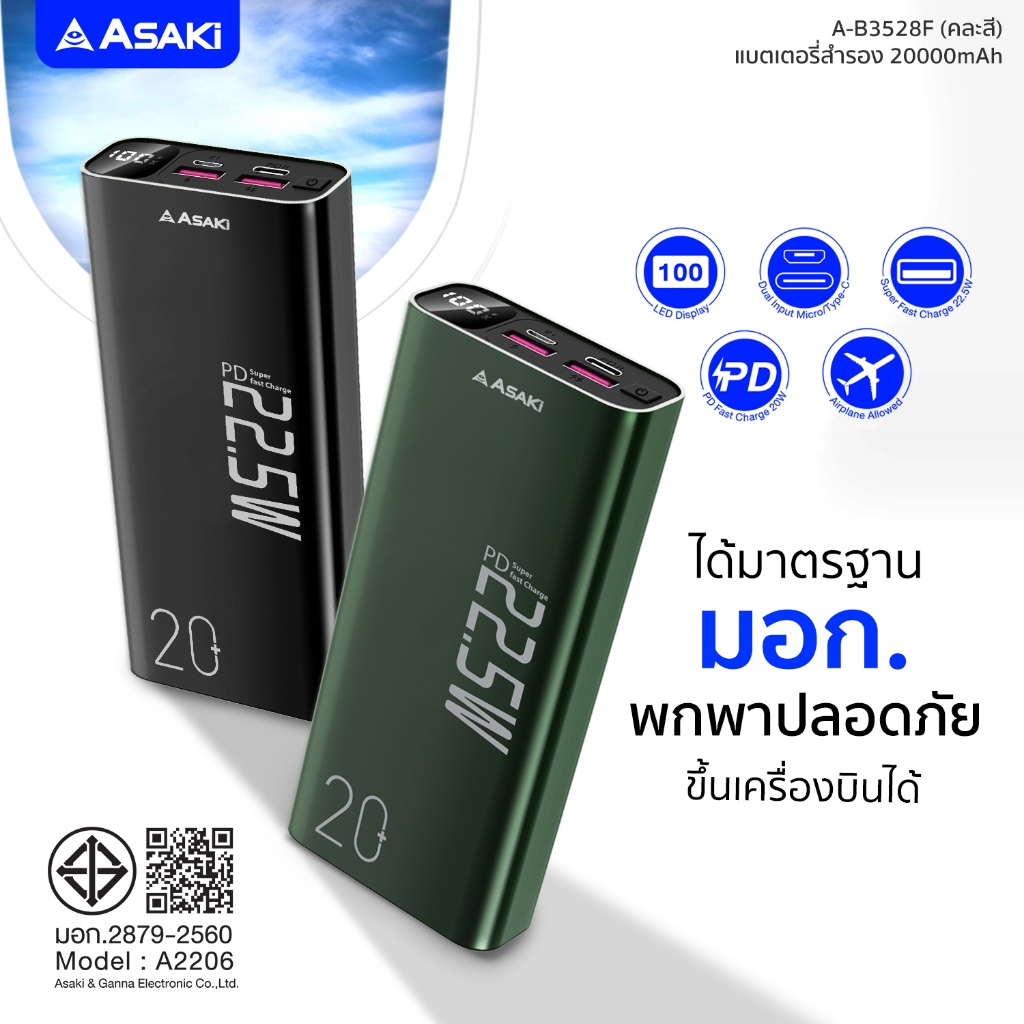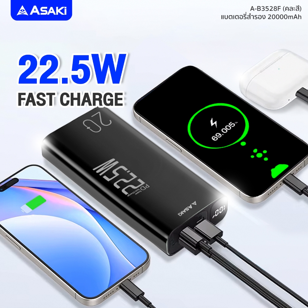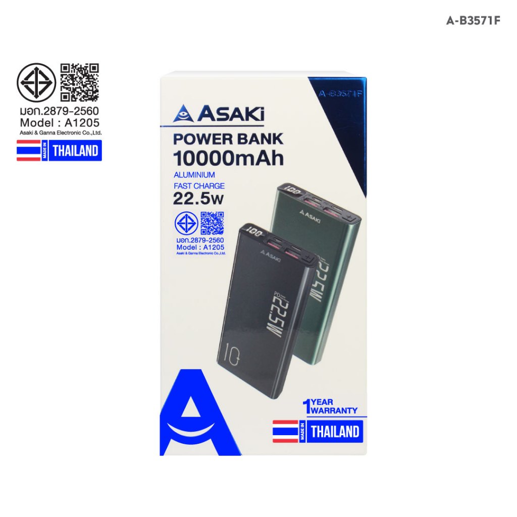 Asaki PowerBank พาวเวอร์แบงค์ 10000 / 20000mAh ชาร์จเร็ว 22.5W มีมอก. จอ LED บอกปริมาณแบต รุ่น A-B3571F ประกัน 1 ปี