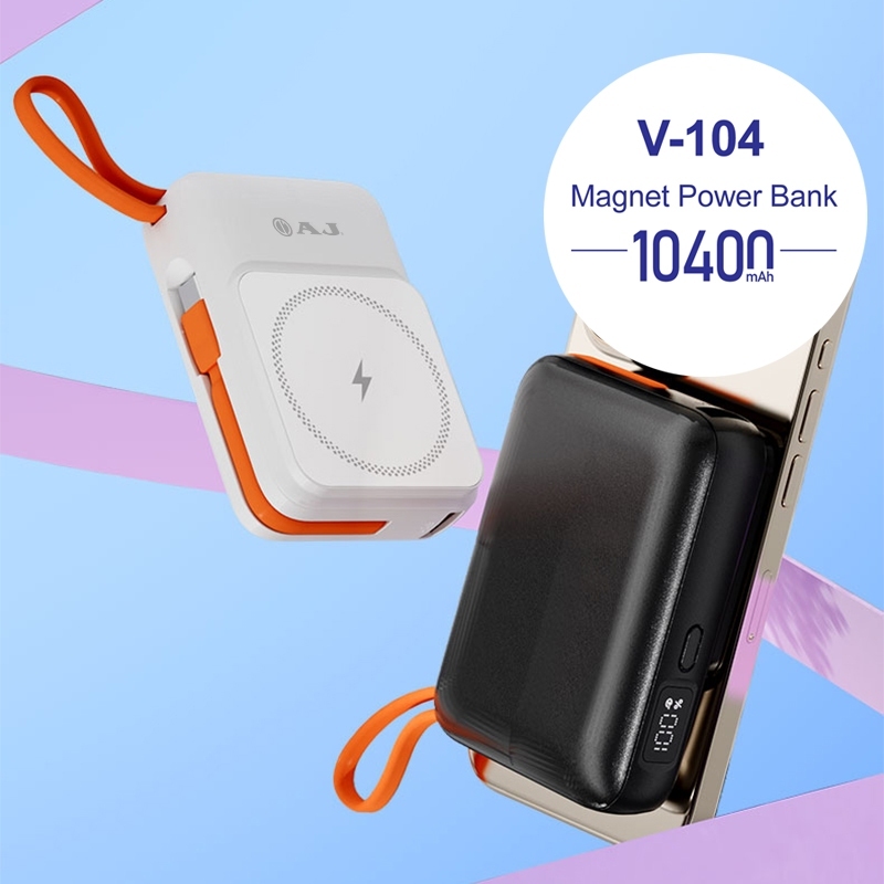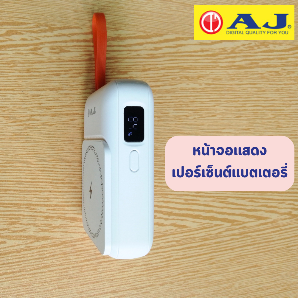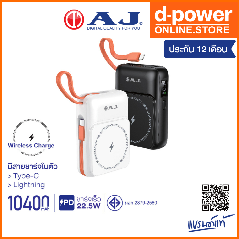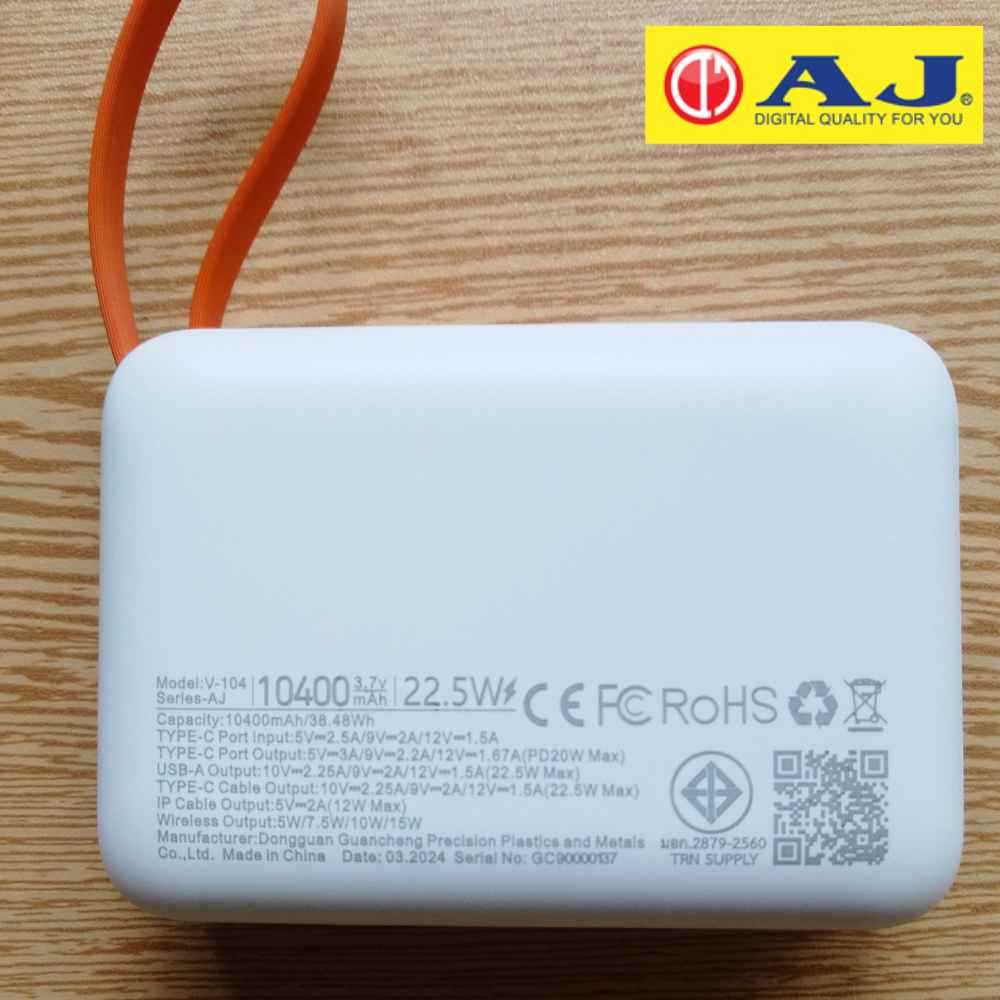AJเพาเวอร์เเบงค์ รุ่นV104 Wireless Charge 10400mAh รองรับชาร์จเร็ว PD3.0/ 22.5W มีสายในตัว (มอก.2879-2560) ประกัน 1 ปี