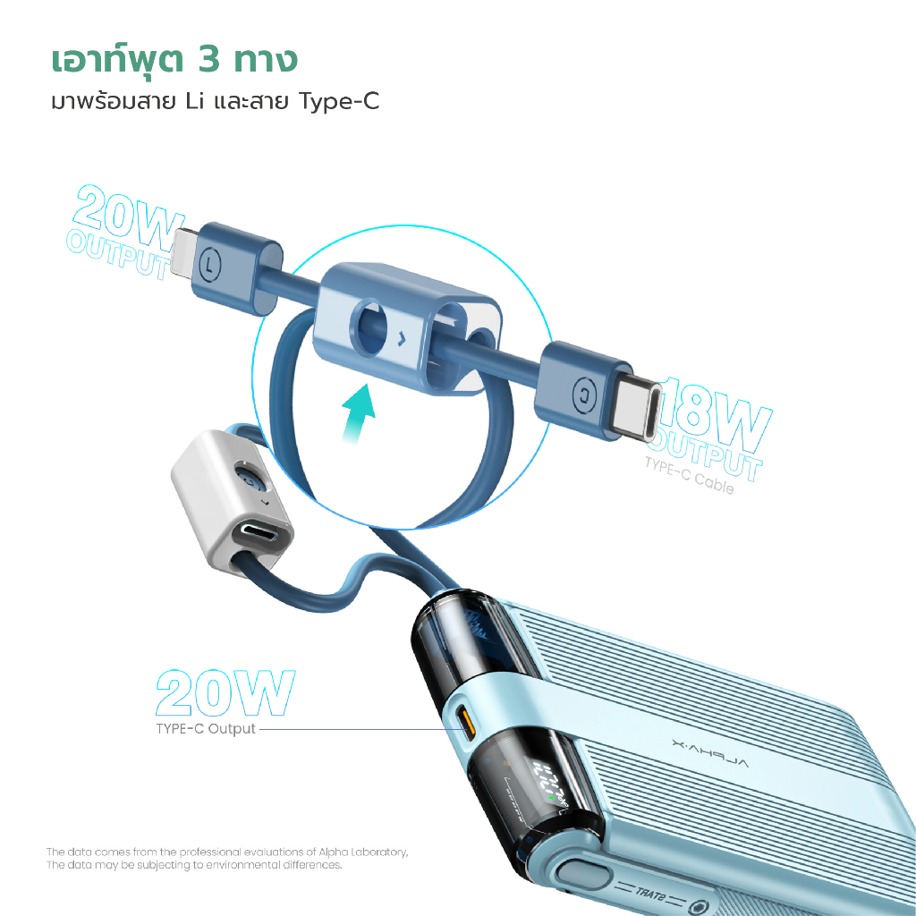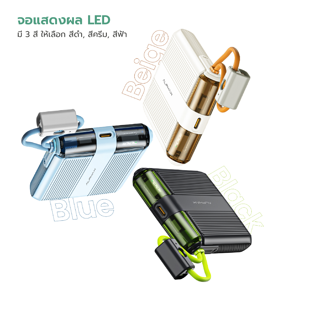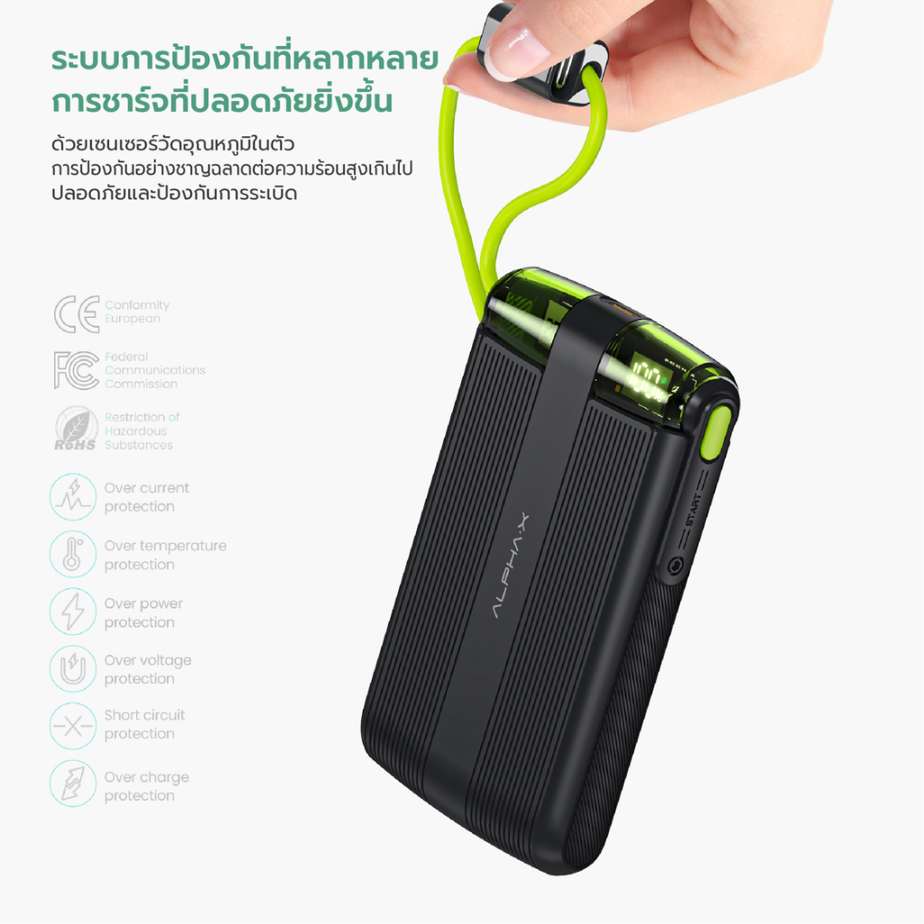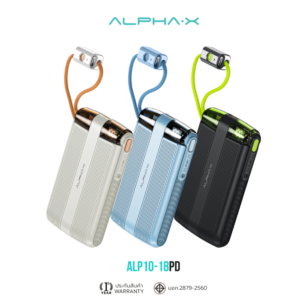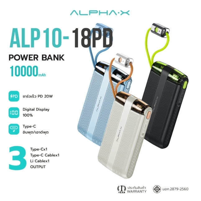 ALPHA·X ALP10-18PD powerbank 10000mah fast charge 20w pd สายชาร์จ ในตัว 3 พอร์ต จอ ไฟ led ประกัน 1 ปี
