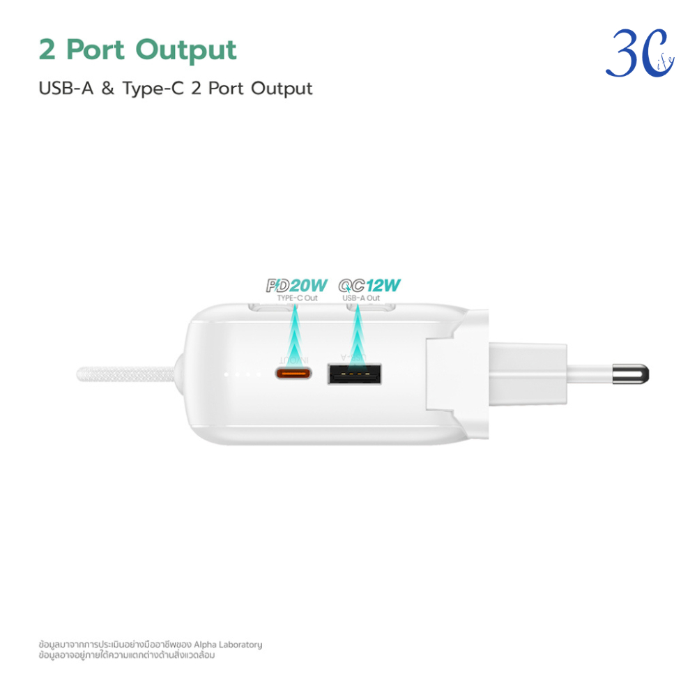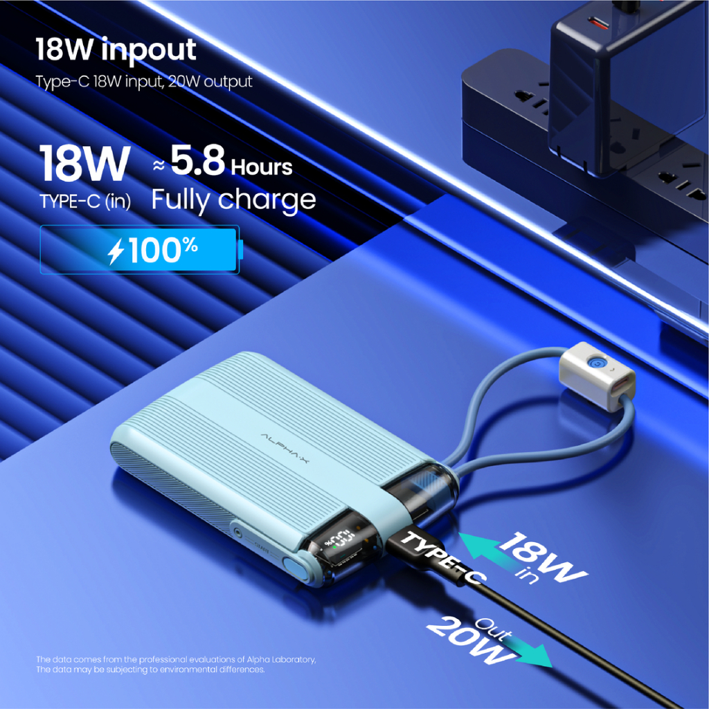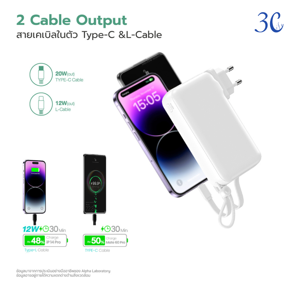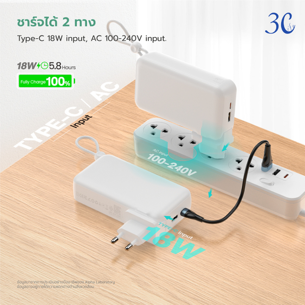 ALPHA·X ALP10-18PD powerbank 10000mah fast charge 20w pd สายชาร์จ ในตัว 3 พอร์ต จอ ไฟ led ประกัน 1 ปี