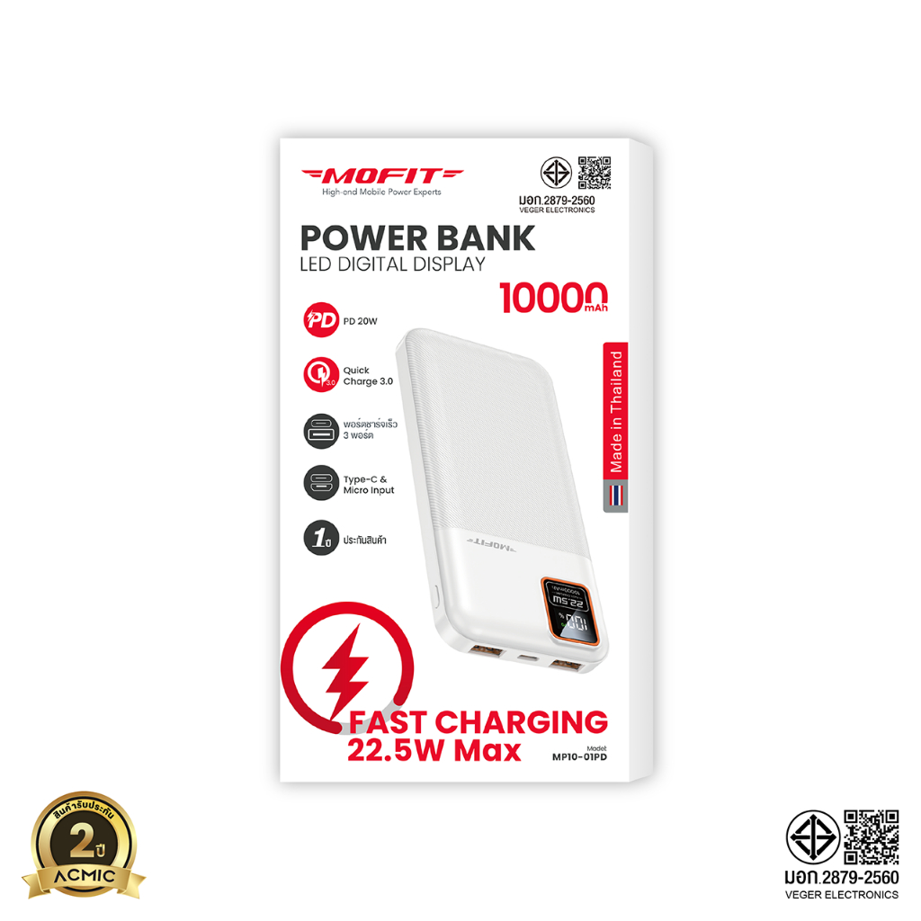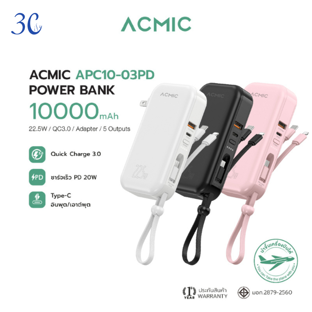 ACMIC MP10-01PD พาวเวอร์แบงค์ชาร์จเร็ว PD20W Powerbank 10000mAh (QC 3.0) จ่ายไฟช่อง Type-C By Mofit รับประกันสินค้า 1 ปี