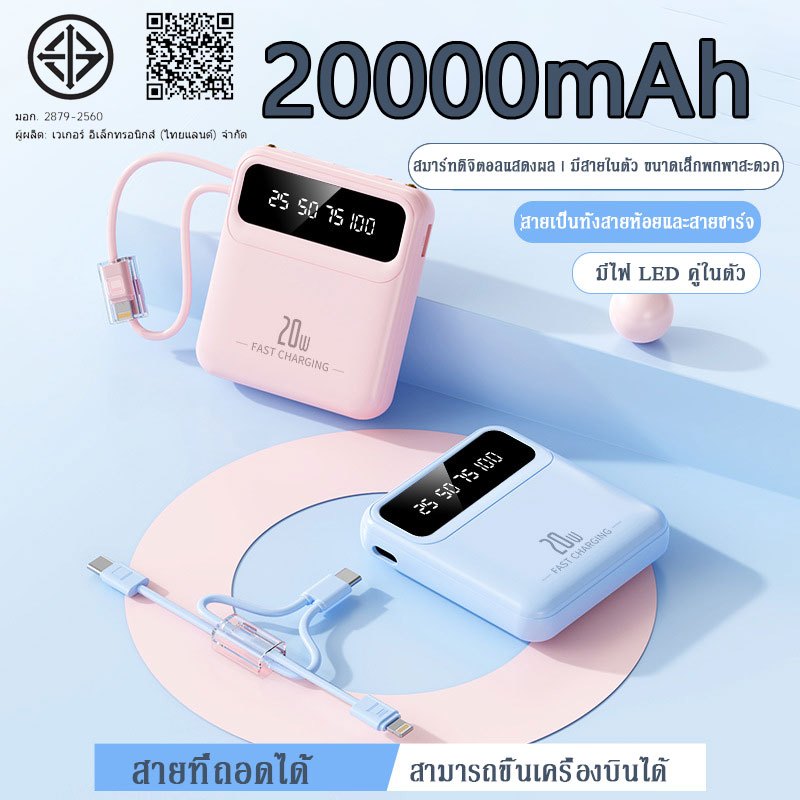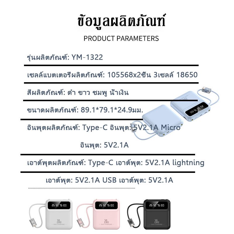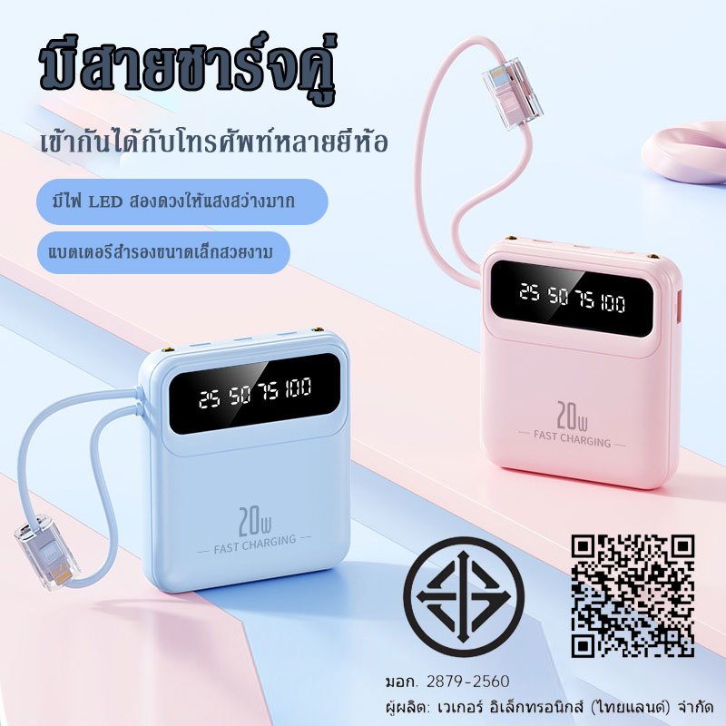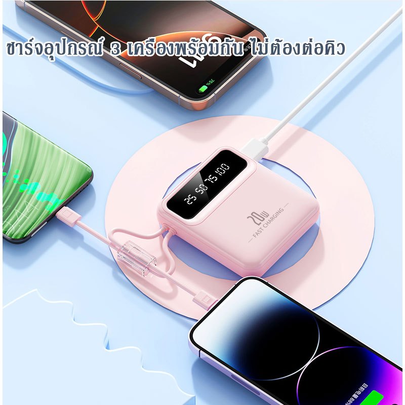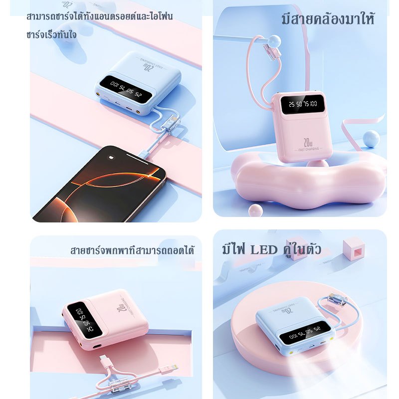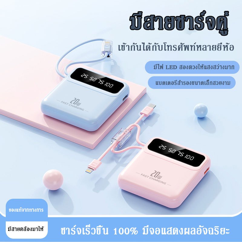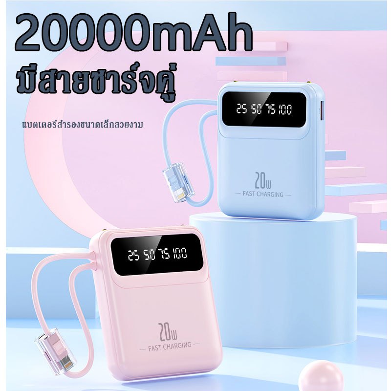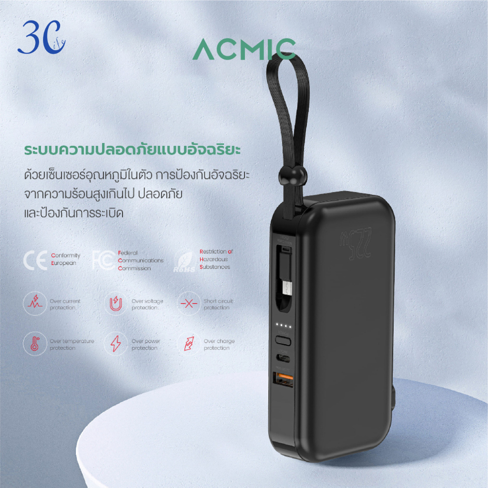 ACMIC-20000mAh/10000mAh พาวเวอร์แบงค์ชาร์จเร็วPD20W ขาปลั๊ก/สายชาร์จในตัว หน้าจอLED