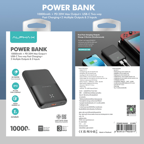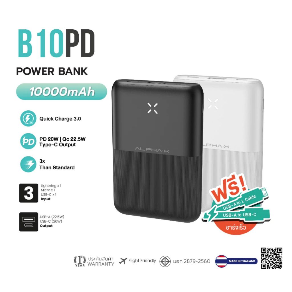 ALPHA·X B10PD Power Bank 10000mAh พาวเวอร์แบงค์ รองรับการชาร์จเร็ว PD20W | QC 3.0 รับประกันสินค้า 1 ปี