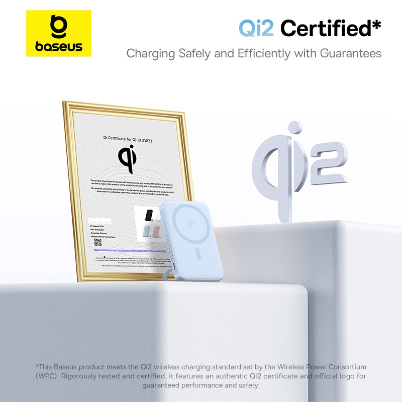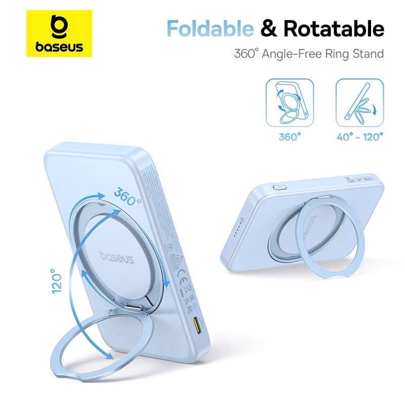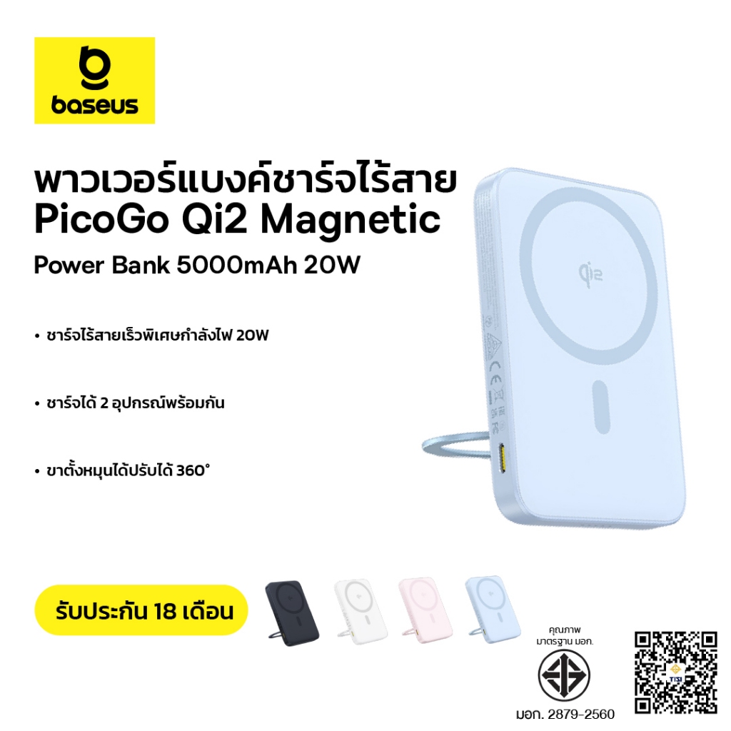 Baseusพาวเวอร์แบงค์ชาร์จไร้สาย 5000mAh 20W รุ่น PicoGo Qi2 Magnetic Power Bank with Rotatable Stand