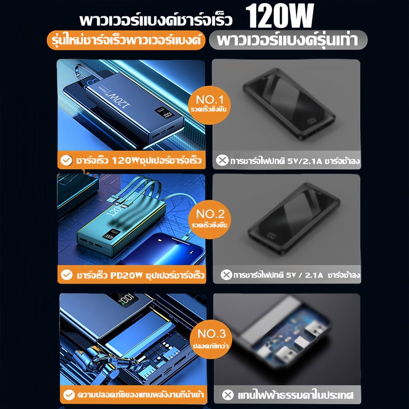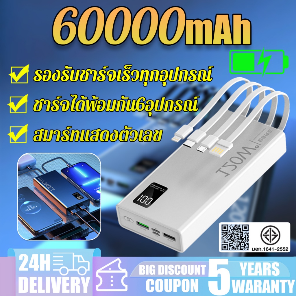 【รับประกัน 5 ปี】Powerank 60000mAh 120W ป้ายไทยมี มอก ของแท้ 100% ชาร์จเร็ว พาวเวอร์แบง
