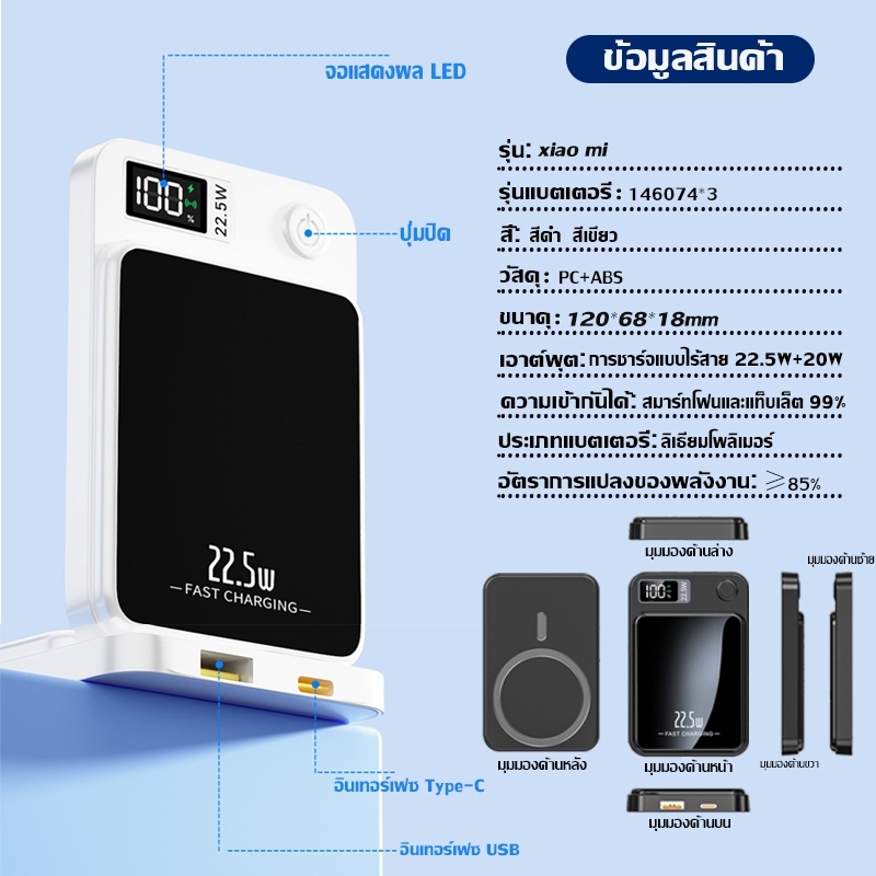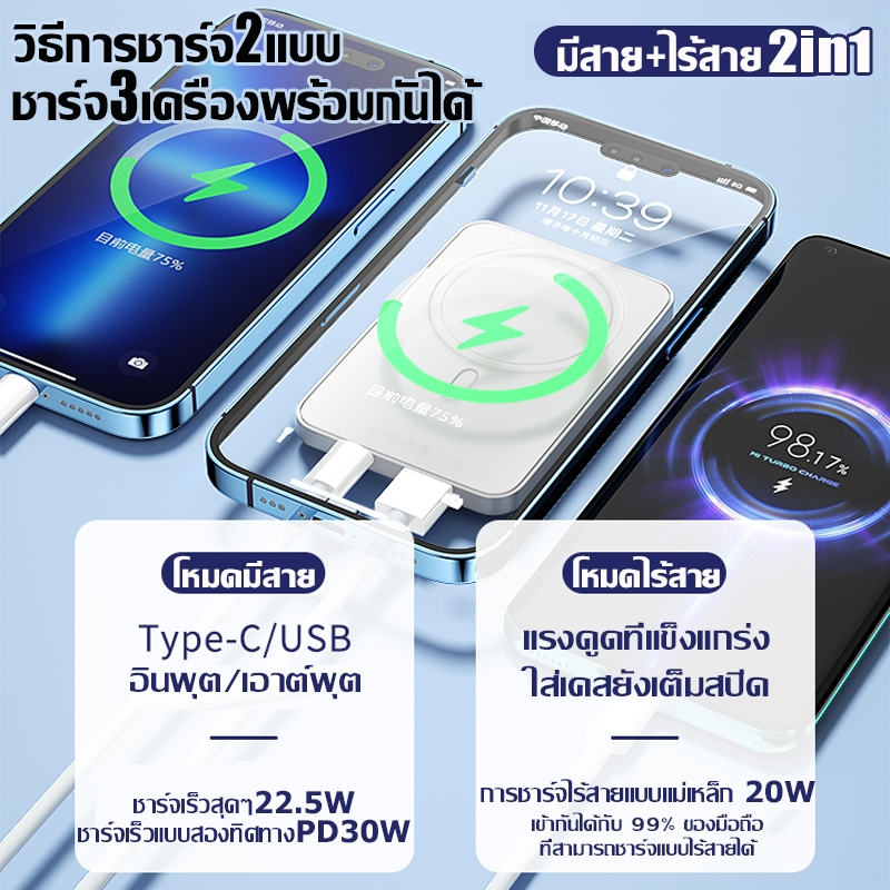 【พาวเวอร์แบงค์ccc จีน】ซาร์จเร็ว 22.5W 50000mAh เครื่องชาร์จไร้สาย MagCharge แบตสำรอง ไร้สาย ชาร์จเร็ว แบบพกพา แบตสำรอง