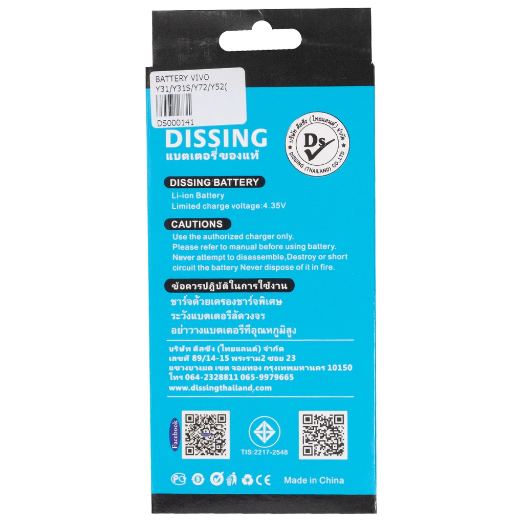 Dissing Battery Vivo Y52S/Y31/Y31S/Y72 5G/Y52 5G **ประกันแบตเตอรี่ 1 ปี**