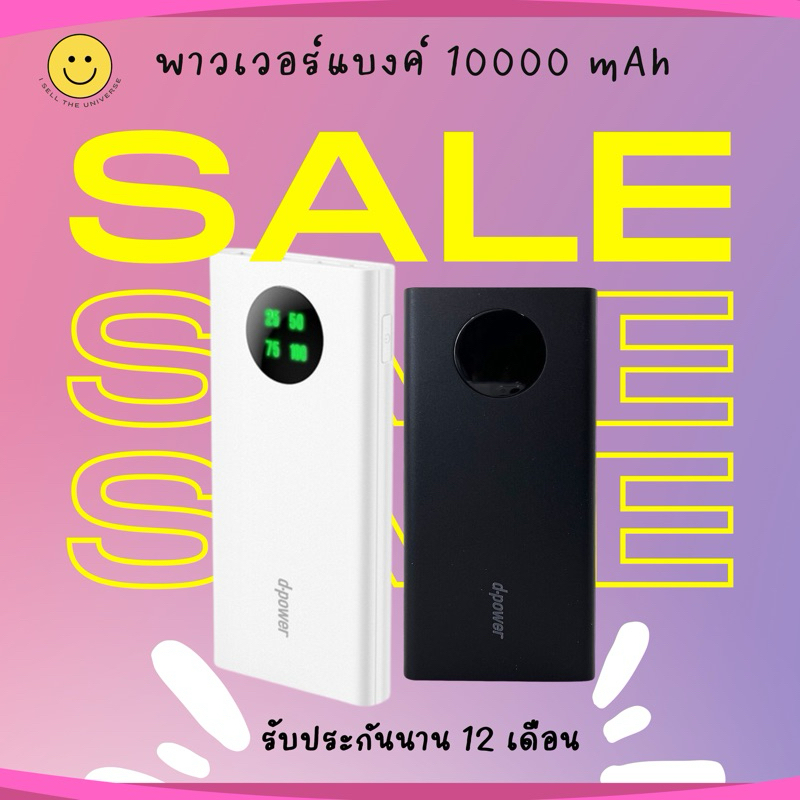 d-power พาวเวอร์แบงค์ 10000mAh มีจอ LED บอกสถานะ สินค้ารับประกันกับทางบริษัท 1 ปี