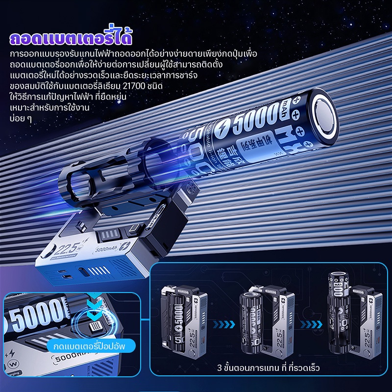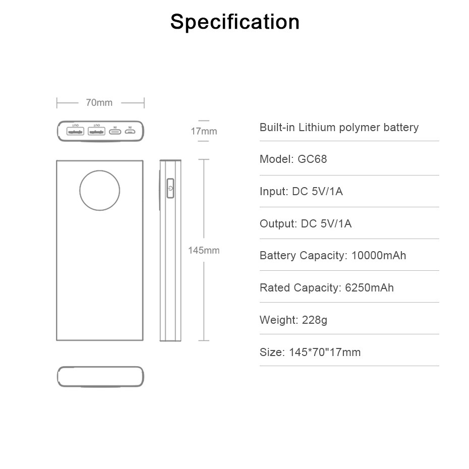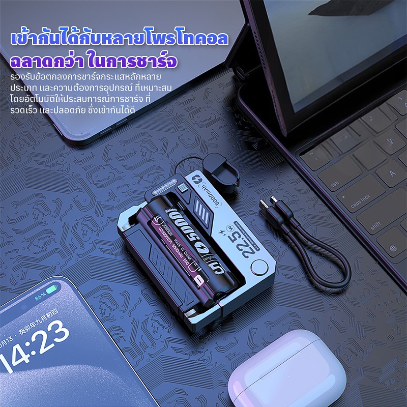 COD 10000mAh เปลี่ยนแบตเตอรี่พาวเวอร์แบงค์ชาร์จด่วนแยกพลังงานมือถือความจุสูงแบบพกพาพร้อมสายชาร์จ Power Bank จอแสดงผล LED