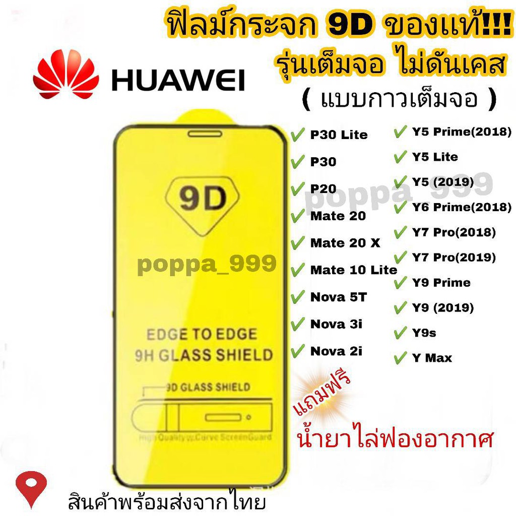 🔥🔥 ฟิล์มกระจก Huawei แบบกาวเต็มแผ่น 9D ของแท้ ทุกรุ่น! Huawei Y9(2019) | Y9 Prime | Y7 | Nova3i | Nova5t รุ่นอย่างดี #9D