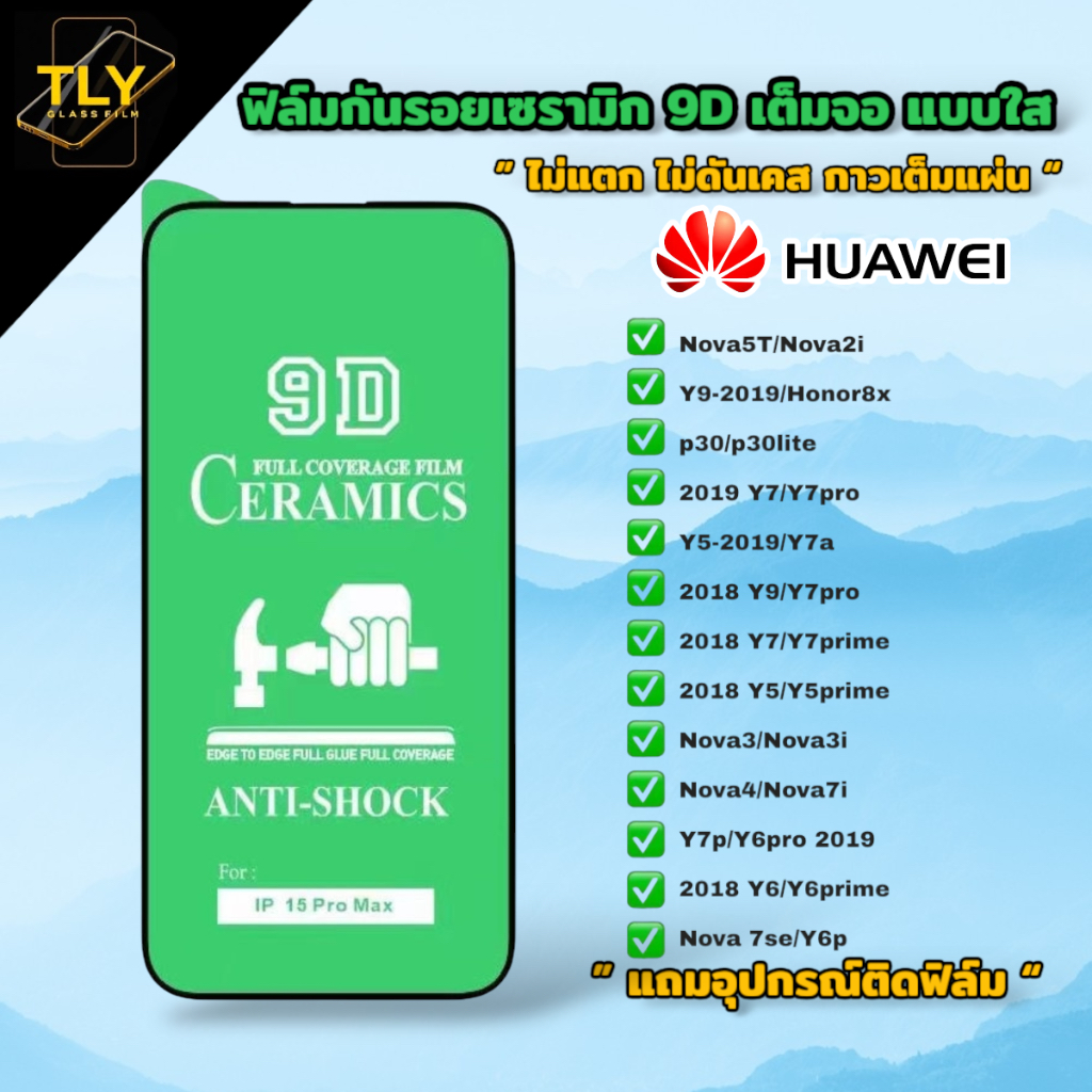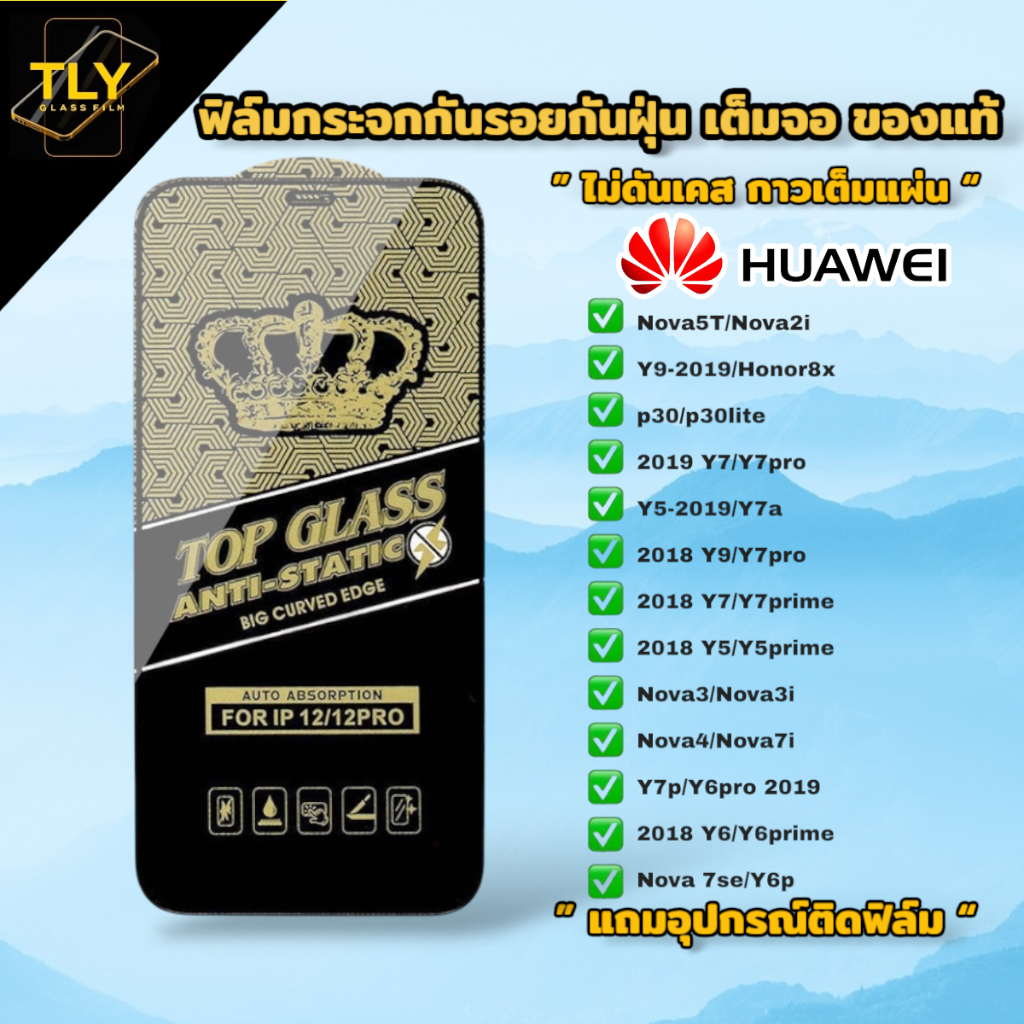 🔥🔥🔥NEW ฟิล์มกระจก for huawei เต็มจอ ใส ฟิล์มกันฝุ่น ของแท้ ทุกรุ่น nova5t y7 y9 y6 nova3i y9prime y9s