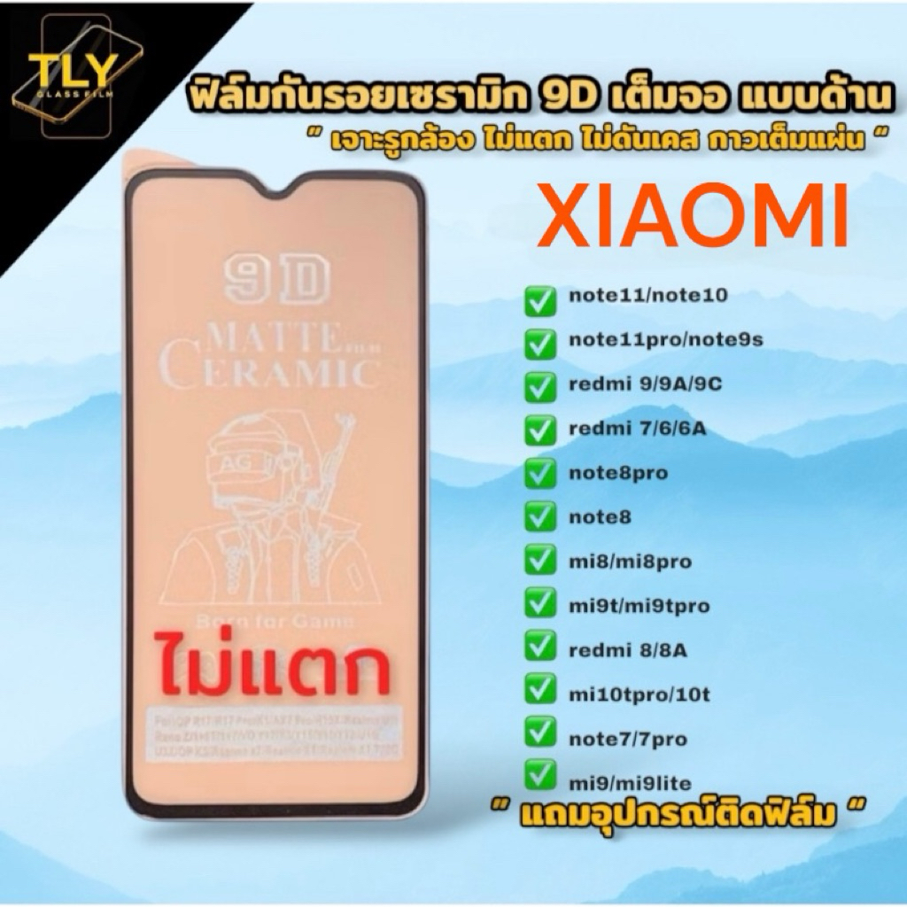 🔥🔥ฟิล์มเซรามิกส์ สำหรับ xiaomi redmi แบบด้าน เต็มจอ เจาะรูกล้อง ฟิล์มกันรอย ฟิล์มพลาสติก ไม่แตก 9D+ไม่ใช่ กระจก note10