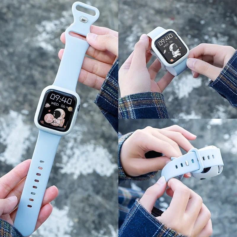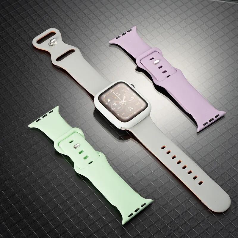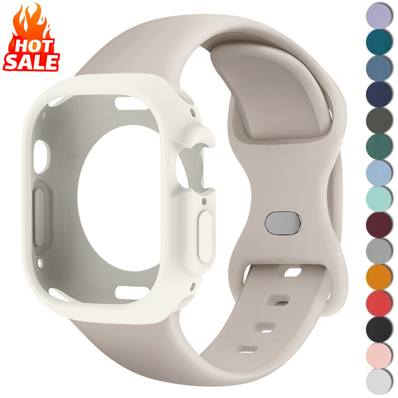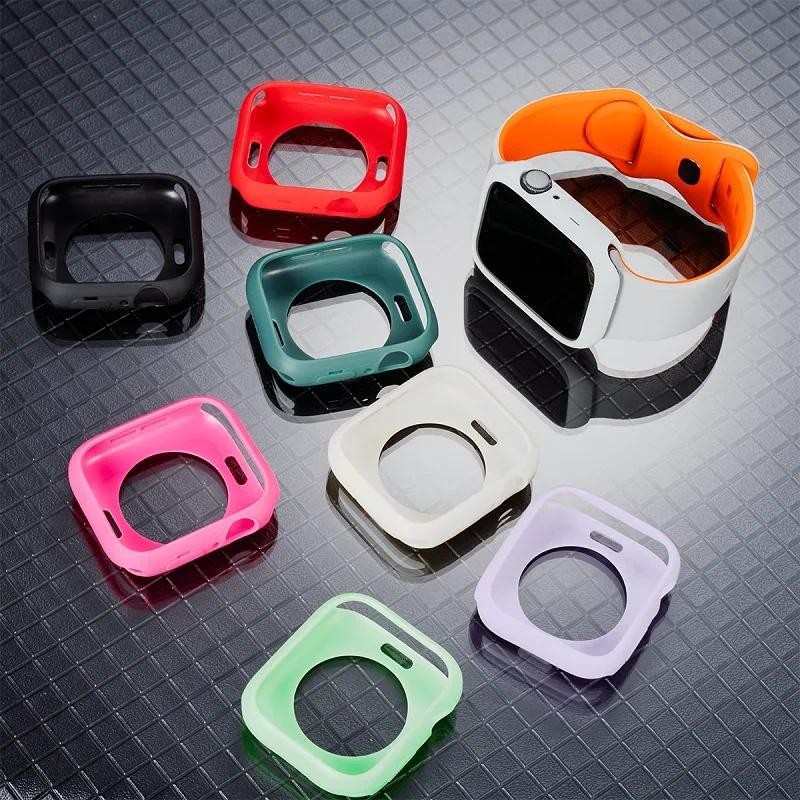 สายรัดซิลิโคนอ่อนนุ่มเคสtpuเข้ากันได้สําหรับapple Watch Ultra 2 49 มม.46 มม.45 มม.44 มม.42 มม.40 41 มม.Series 10 9 8 7 6 SE 5 4