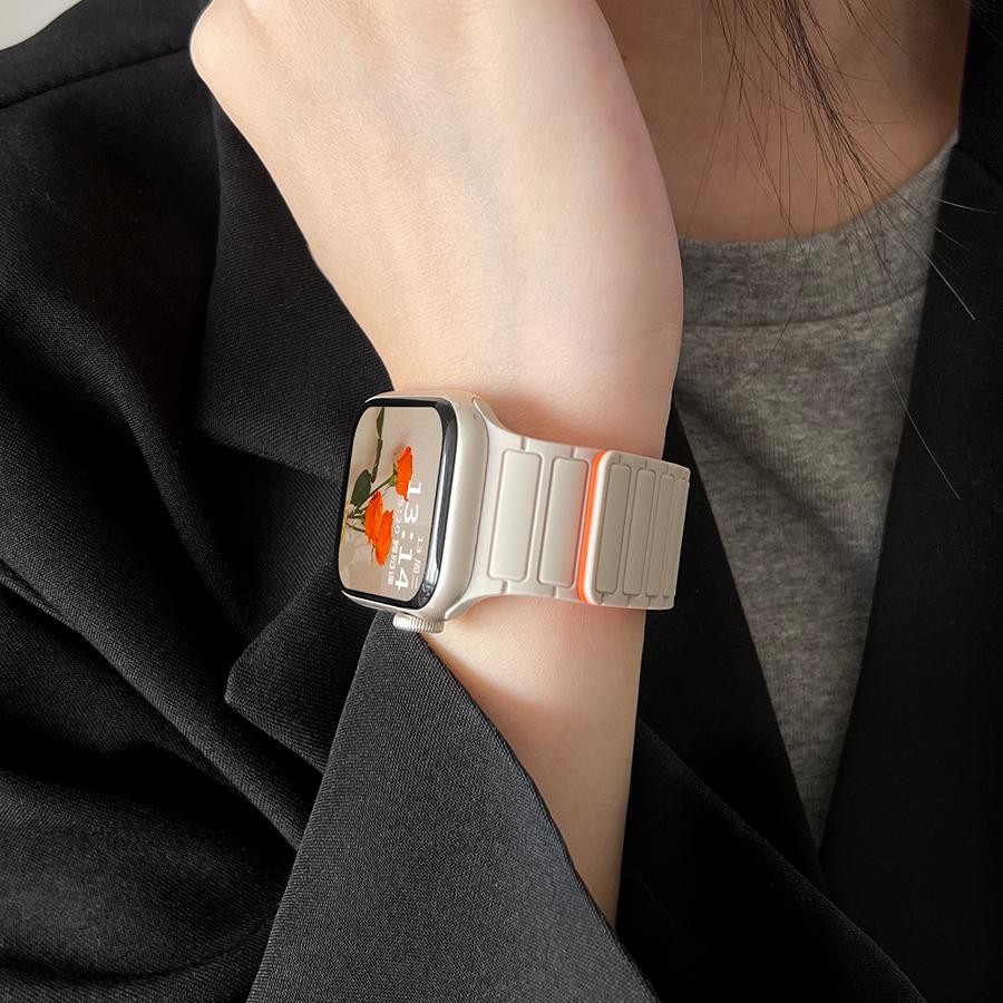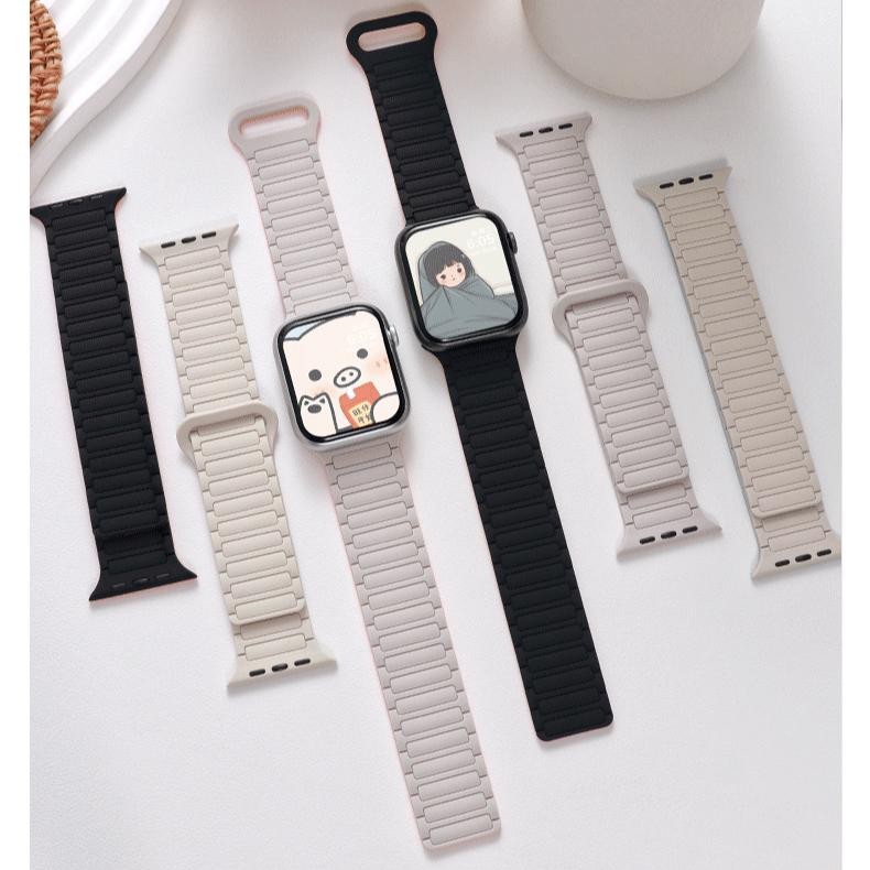 สายรัดซิลิโคนอ่อนนุ่มแม่เหล็กสําหรับ แอปเปิล ดู ชุด 10 46 มม.42 มม.อัลตร้า 2/1 49 มม. 45 มม. 44 มม. 40 มม. 41 มม. 38 มม. ชุด 9 8 7 6 กับ2 5 4 3