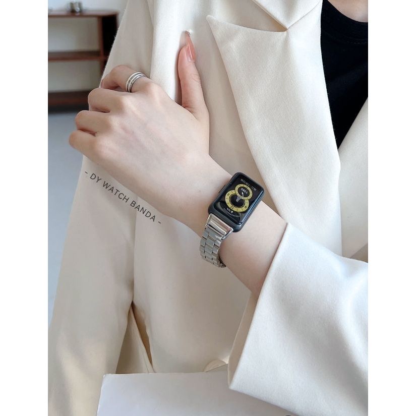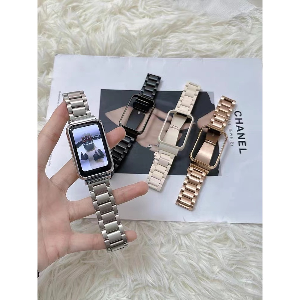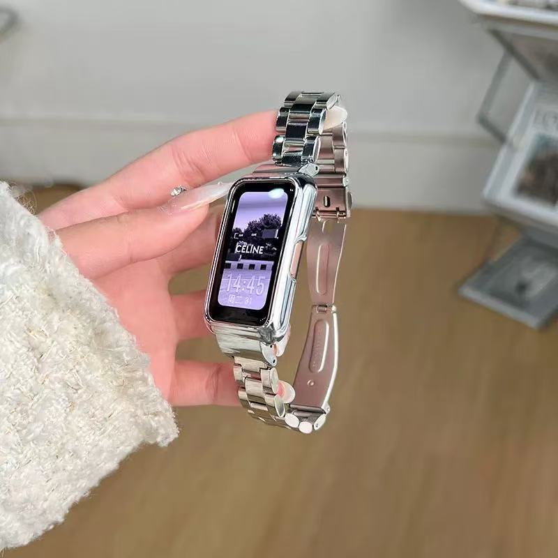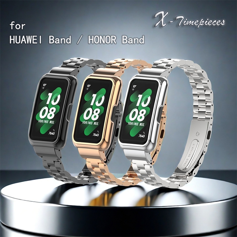 สายรัดสำหรับ Huawei Band 10/9/8/7/6 สำหรับ Huawei Honor 7/6, สายรัดนาฬิกานุ่มกีฬาธุรกิจสแตนเลสโลหะกันน้ำ