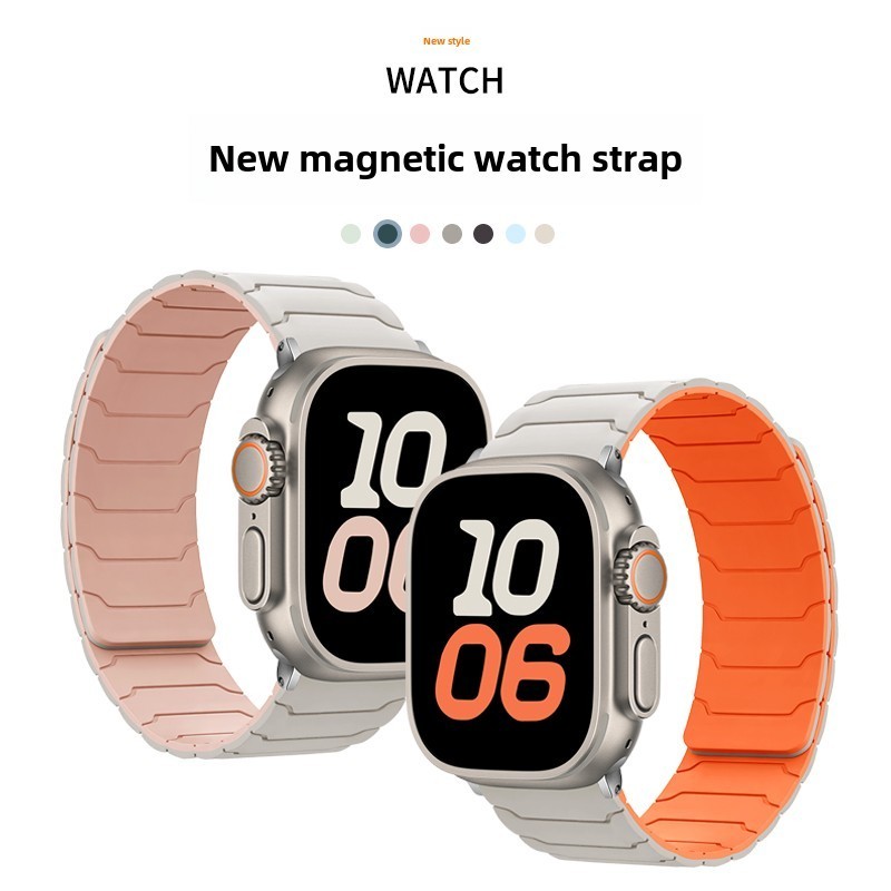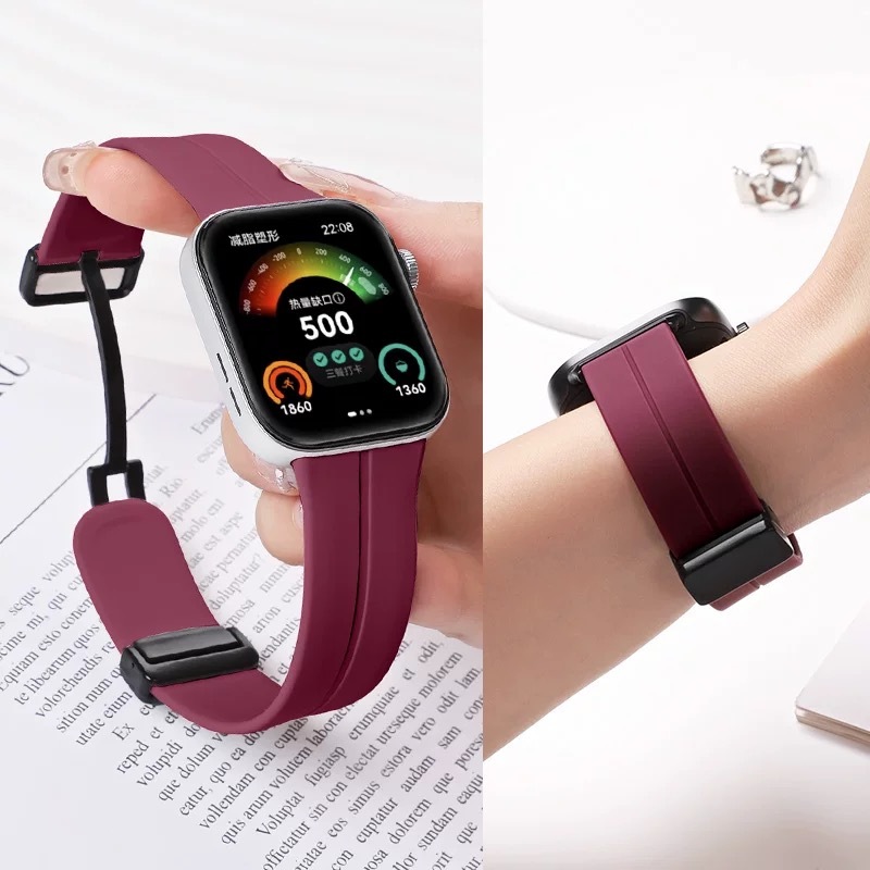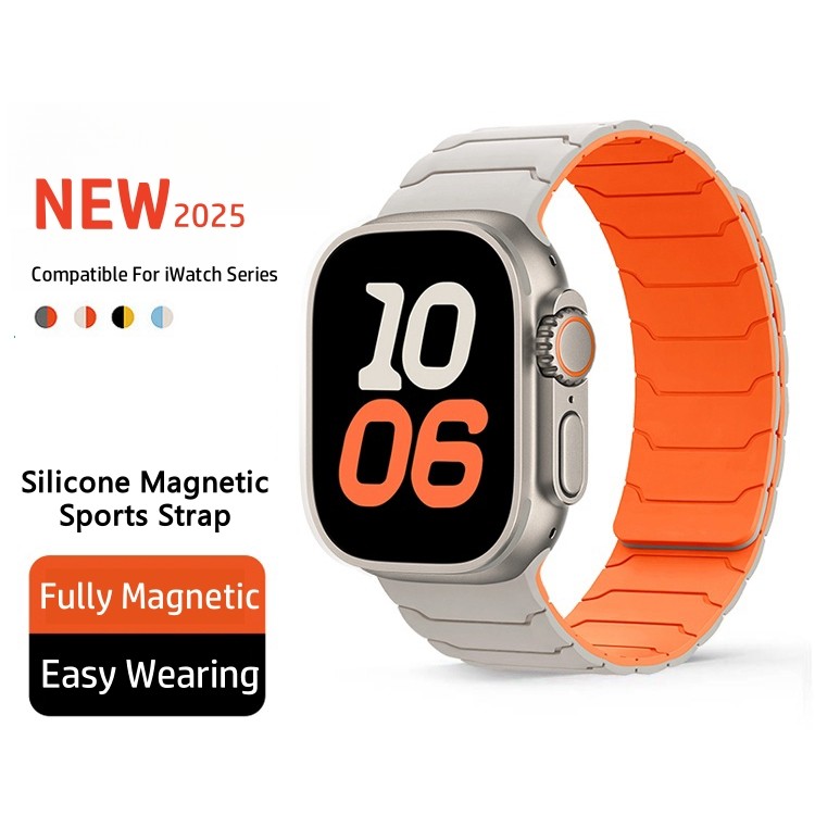 สายรัดซิลิโคนแม่เหล็กแบบสปอร์ตสำหรับ iWatch Series 10 9 8 7 6 5 SE สายซิลิโคน Ultra 2 สำหรับ Series S10 42 มม. 46 มม. 49 มม. 45 มม. 44 มม. 41 มม. 40 มม. อุปกรณ์เสริมสายรัดอัจฉริยะ