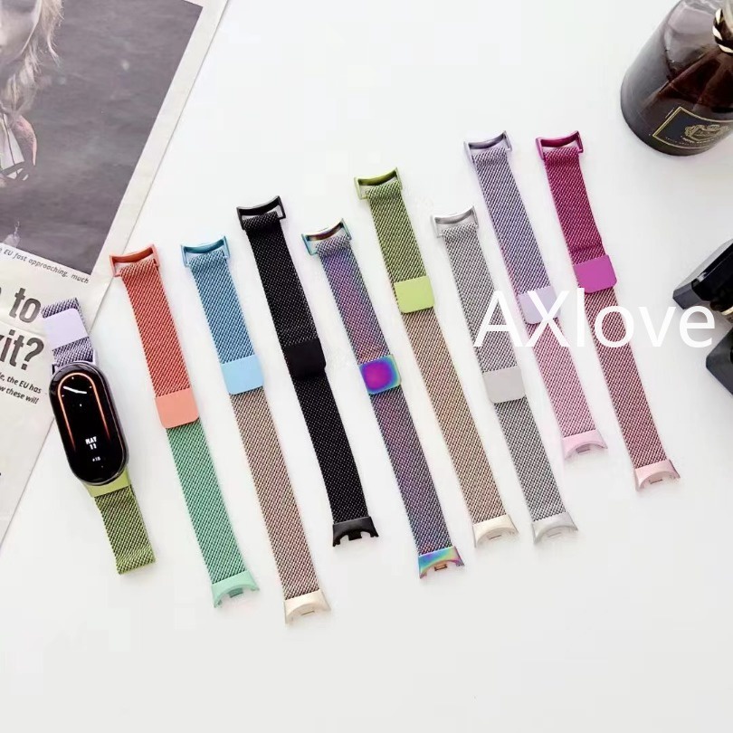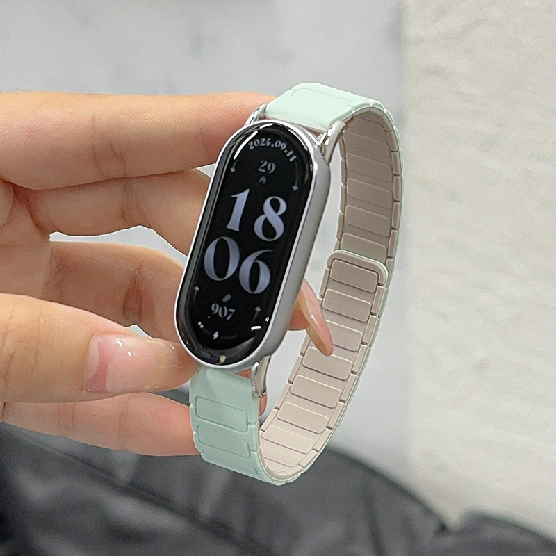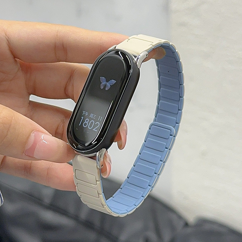สายรัดแม่เหล็กสําหรับ Xiaomi mi Band 8 9 NFC สายรัดข้อมือกีฬาสําหรับ Miband 9Pro 8 Pro mi 7 6 5 4 3 NFC Magnetic Loop อุปกรณ์เสริมสร้อยข้อมือสําหรับผู้หญิงผู้ชาย