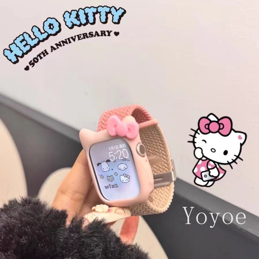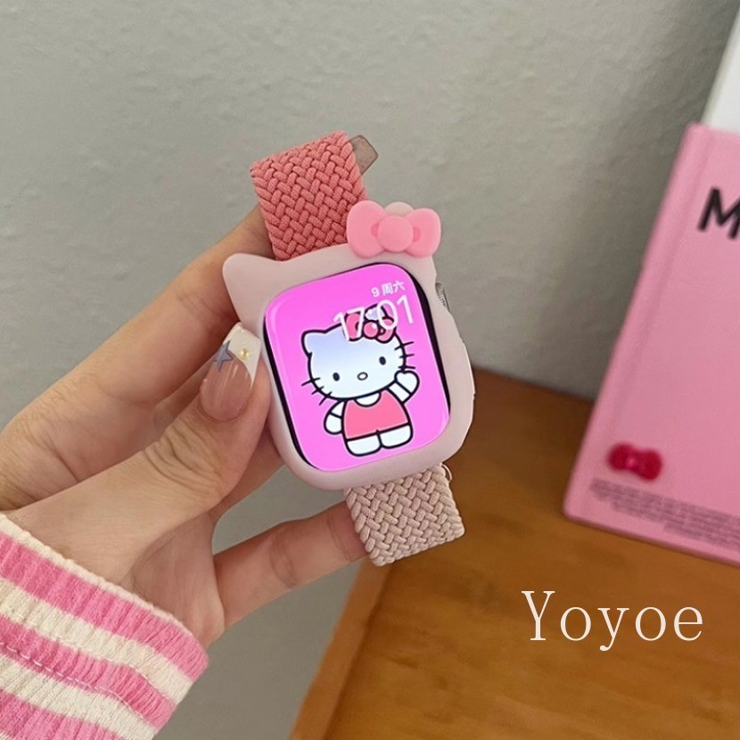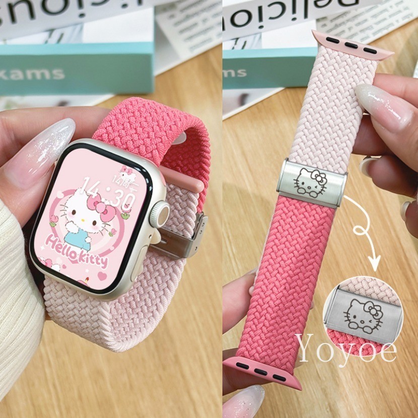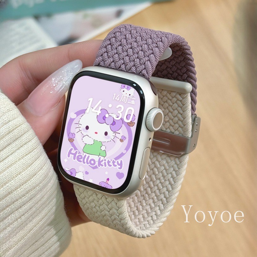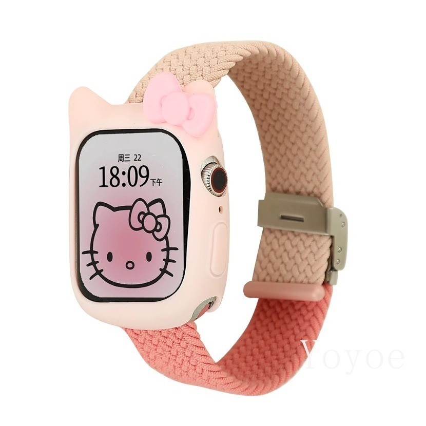 สายรัดแบบห่วงถักสําหรับ แอปเปิล ดู พิเศษ 2 49 มม. 44 45 มม. 42 มม. 41 มม. แมวน่ารักกรณีไนลอนยืดหยุ่นอุปกรณ์เสริมสร้อยข้อมือสําหรับ iดู ชุด 9 8 7 6 5 4 กับ 3