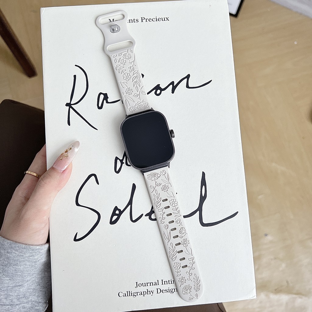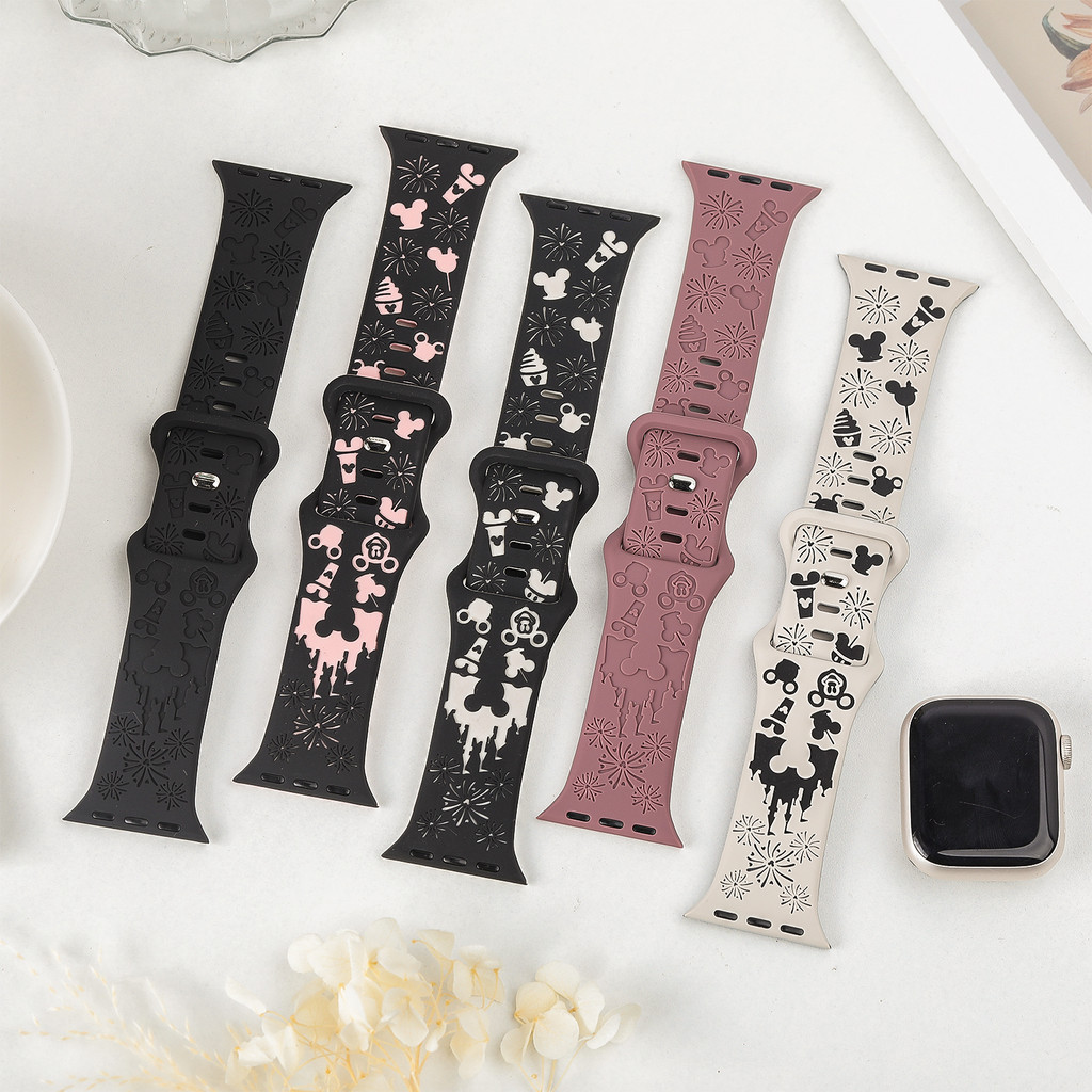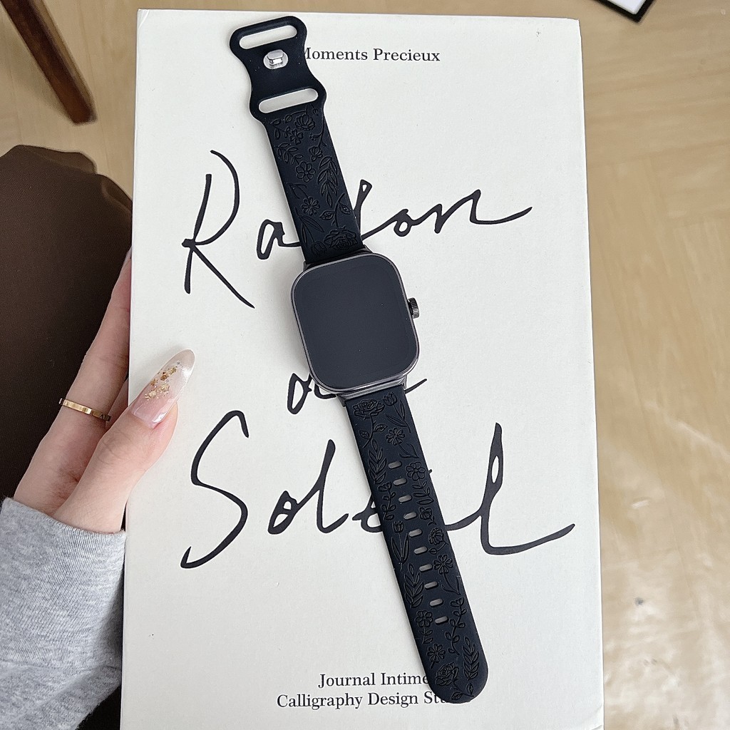 สายรัดยางนุ่มแกะสลัก for Smart Watch Ultra/SE 3 2 Series 11 10 9 8 7 6 SE 5 4 IWatch 49 46 45 44 42 41 40 38 มม