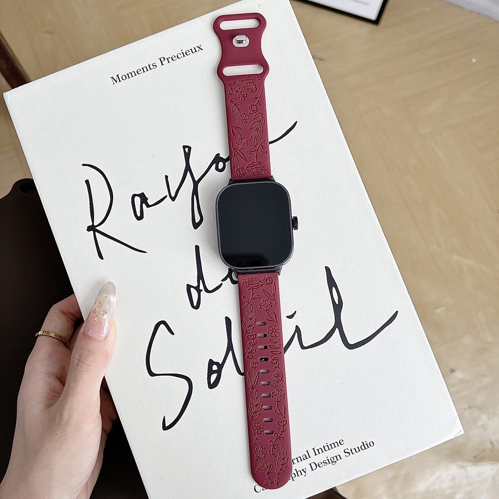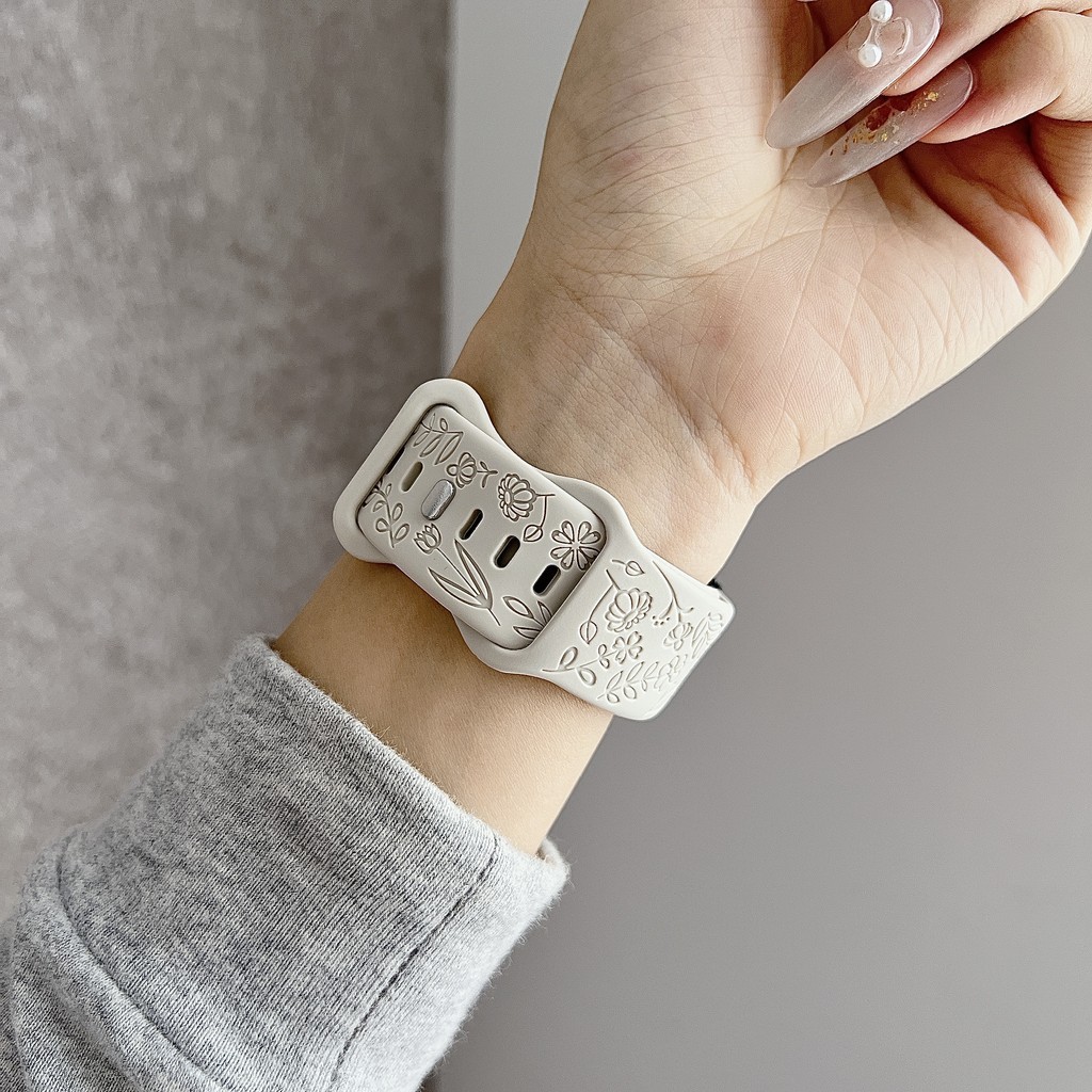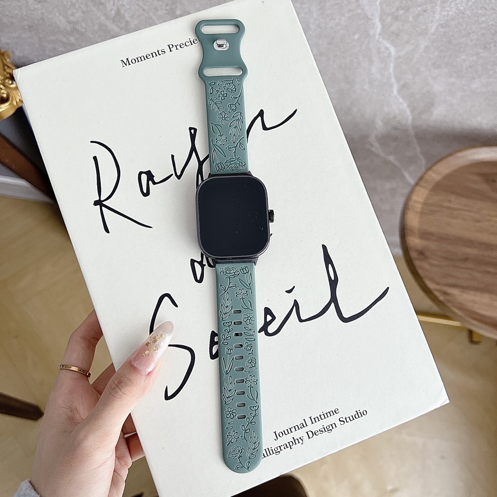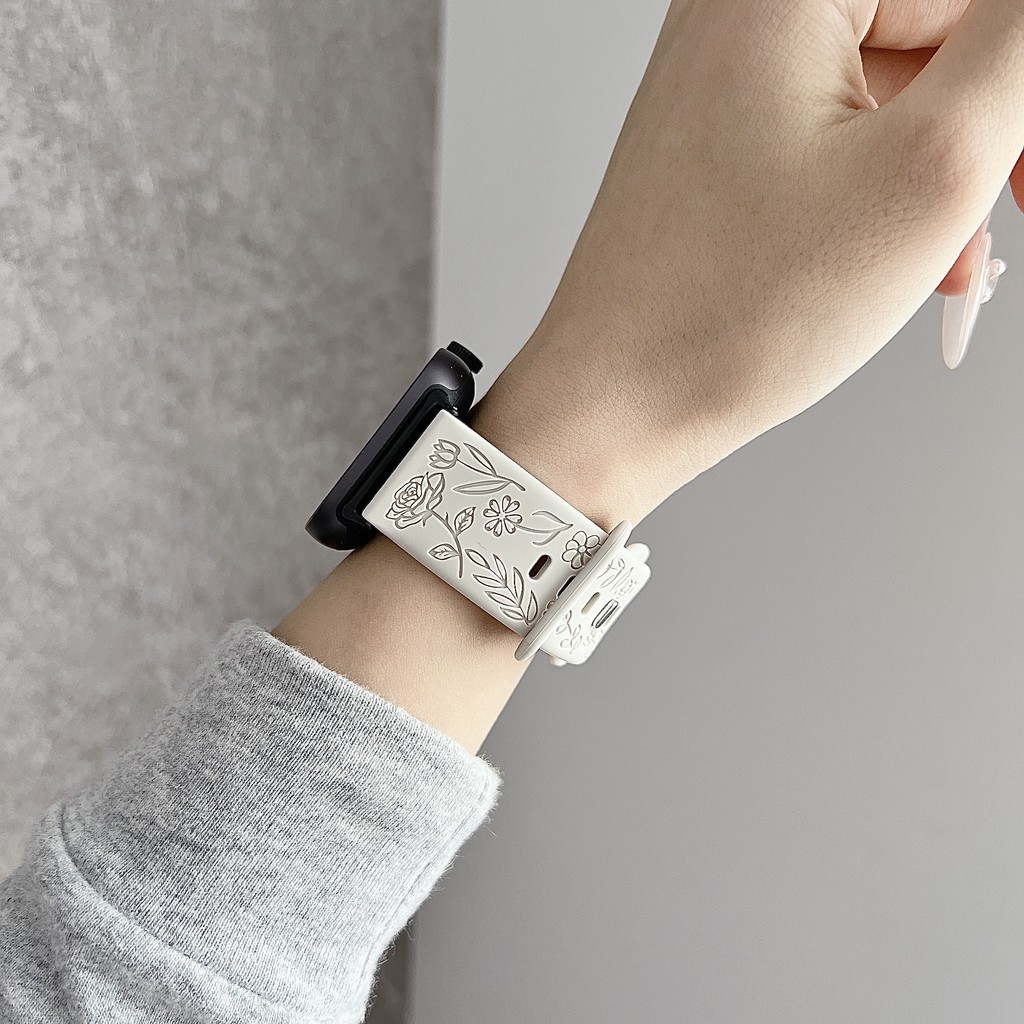 สายรัดยางนุ่มแกะสลัก for Smart Watch Ultra/SE 3 2 Series 11 10 9 8 7 6 SE 5 4 IWatch 49 46 45 44 42 41 40 38 มม