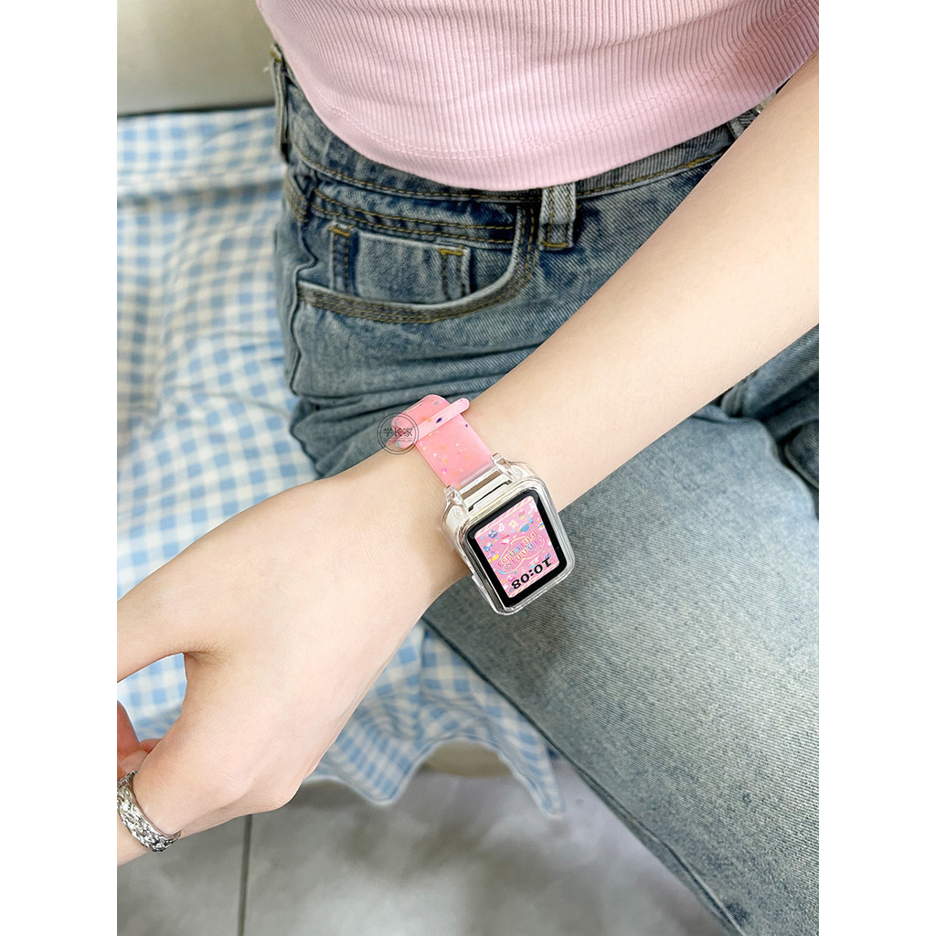 สายรัดซิลิโคนเจลลี่ใสพร้อมเคสสําหรับ Xiaomi Mi Band 8 Active Smart Band 8 Active สร้อยข้อมือ Breathable Band สําหรับ Redmi Band 2 สายรัดข้อมือกีฬาเปลี่ยนอุปกรณ์เสริม