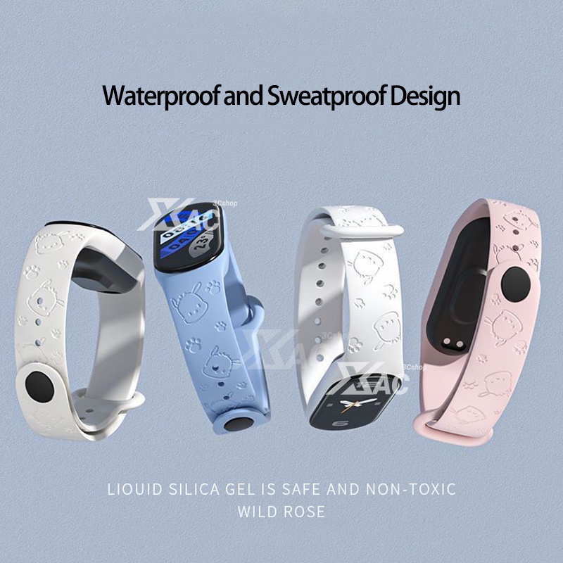 สําหรับ miband 10 miband 9 xiaomi band 5/6/7/8/9/10 สายคล้อง 3D เลเซอร์แกะสลักสายคล้องหมีสําหรับ Xiaomi Mi Band 8 7 6 5 สายรัดข้อมือซิลิโคนสร้อยข้อมือสายรัดข้อมือ Smartwatch อุปกรณ์เสริม