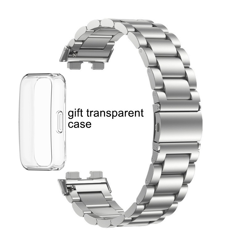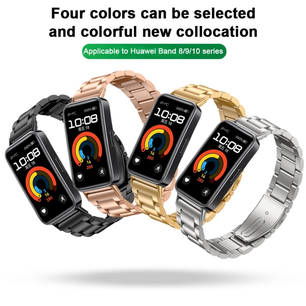 โลหะสายสแตนเลสสําหรับหัวเว่ยวงHuawei Band 10 9 8สร้อยข้อมือสามลูกปัดสายนาฬิกาข้อมือสายรัดข้อมือโลหะ