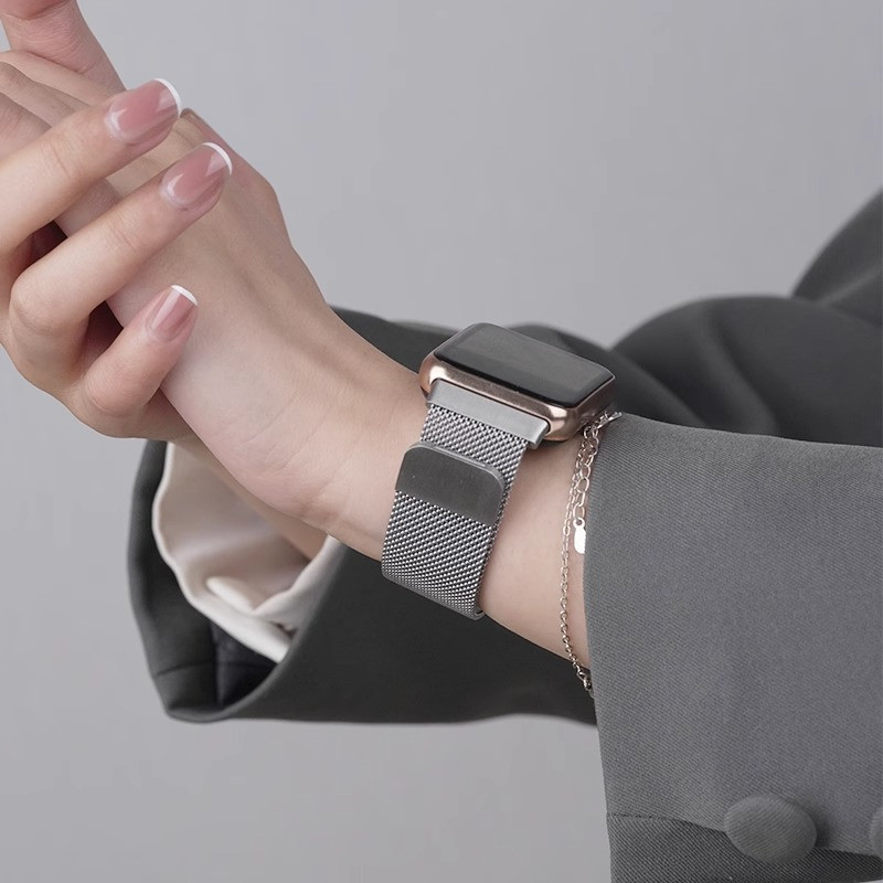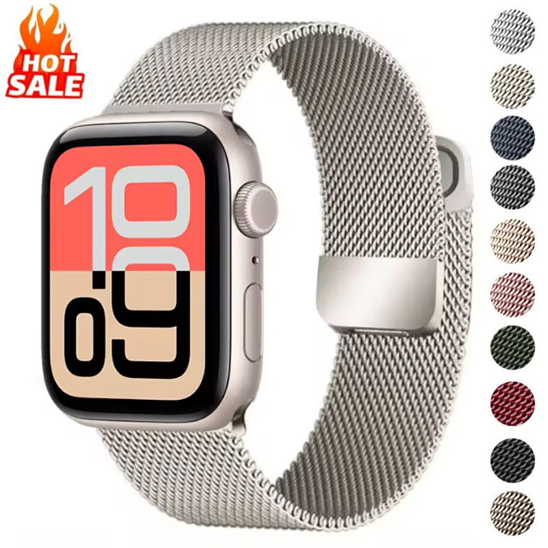 โลหะมิลานสร้อยข้อมือสายรัดแม่เหล็กสําหรับ แอปเปิล ดู พิเศษ 3/2 49 มม ชุด 11 10 46 มม. 42 มม. 45 มม. 44 มม. 41 มม. ฉันดู ชุด 9 7 8 5 6 กับ3