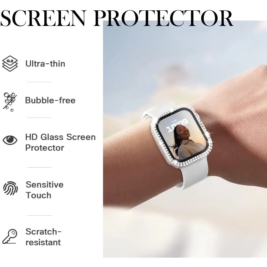 แก้วเพชร + เคสป้องกันเข้ากันได้สําหรับ แอปเปิล ดู พิเศษ 3 2 1 49 มม. 46 มม. 42 มม. 45 มม. 41 มม. 40 มม. 44 มม. ชุด 11 10 9 8 7 6 กับ 5 4 3