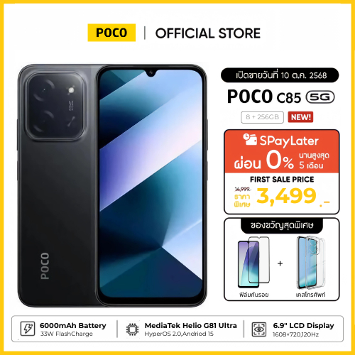 [NEW] Xiaomi POCO C85 8+256GB แบต 6000mAh ชาร์จไว 33W|หน้าจอขนาดใหญ่ 6.9” |กล้องคู่ AI คมชัด 50MP