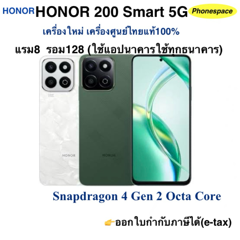 Honor 200 Smart(5G)แรม8 รอม256 Snapdragon 4 Gen 2 Octa Core เครื่องใหม่เครื่องศูนย์ไทยแท้ ประกันร้าน 3 เดือน