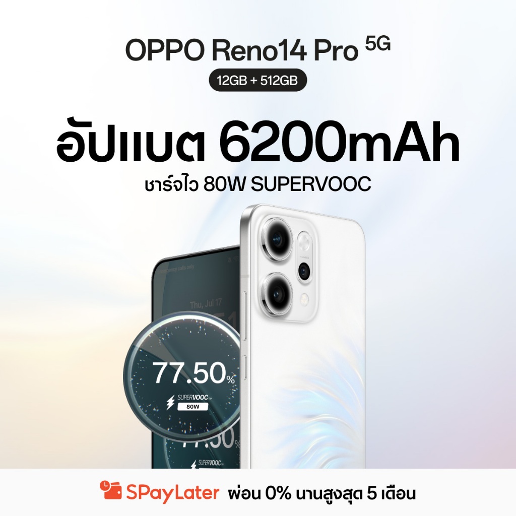 [New] OPPO Reno14 Pro (12+512G) โทรศัพท์มือถือ Telephoto 3.5x คมชัดระดับ 50MP กันน้ำ/กันฝุ่น IP69 รองรับการชาร์จไร้สาย