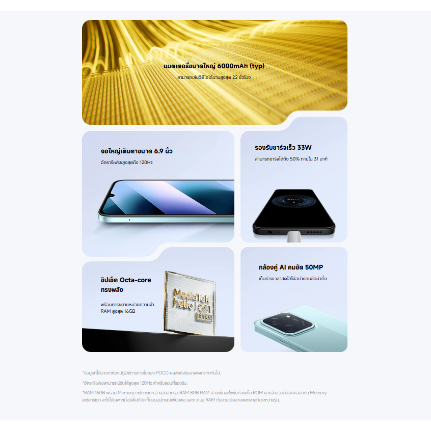 (รับประกันศูนย์ไทย 1 ปี) POCO C85 / POCO C71 ขนาด 6.9 นิ้ว โปรเซสเซอร์ MediaTek Helio G81-Ultra แบตเตอรี่ 6000mAh