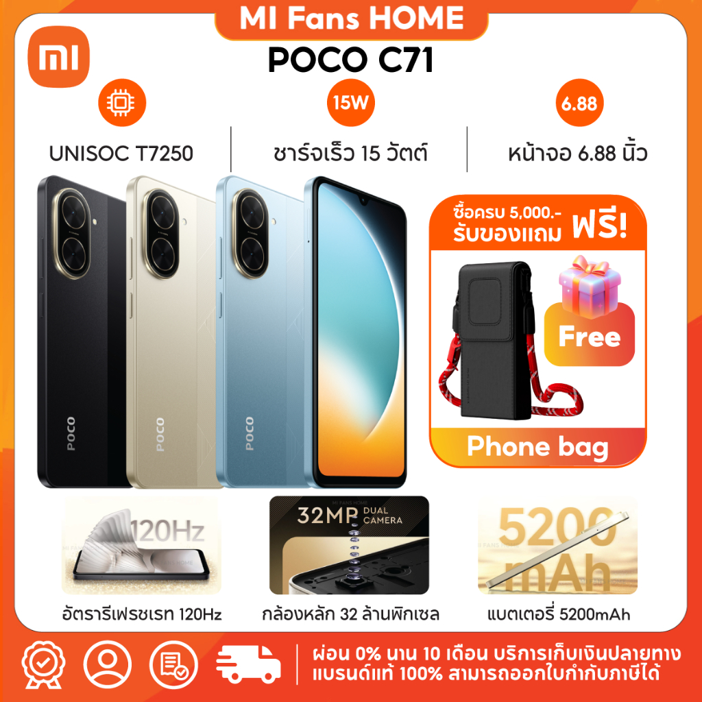(สินค้าพร้อมส่งทันที) Xiaomi POCO C71 โทรศัพท์มือถือ โปรเซสเซอร์ Octa-Core ทรงพลัง หน้าจอ 6.88 แบตเตอรี่ขนาดใหญ่ 5200mAh