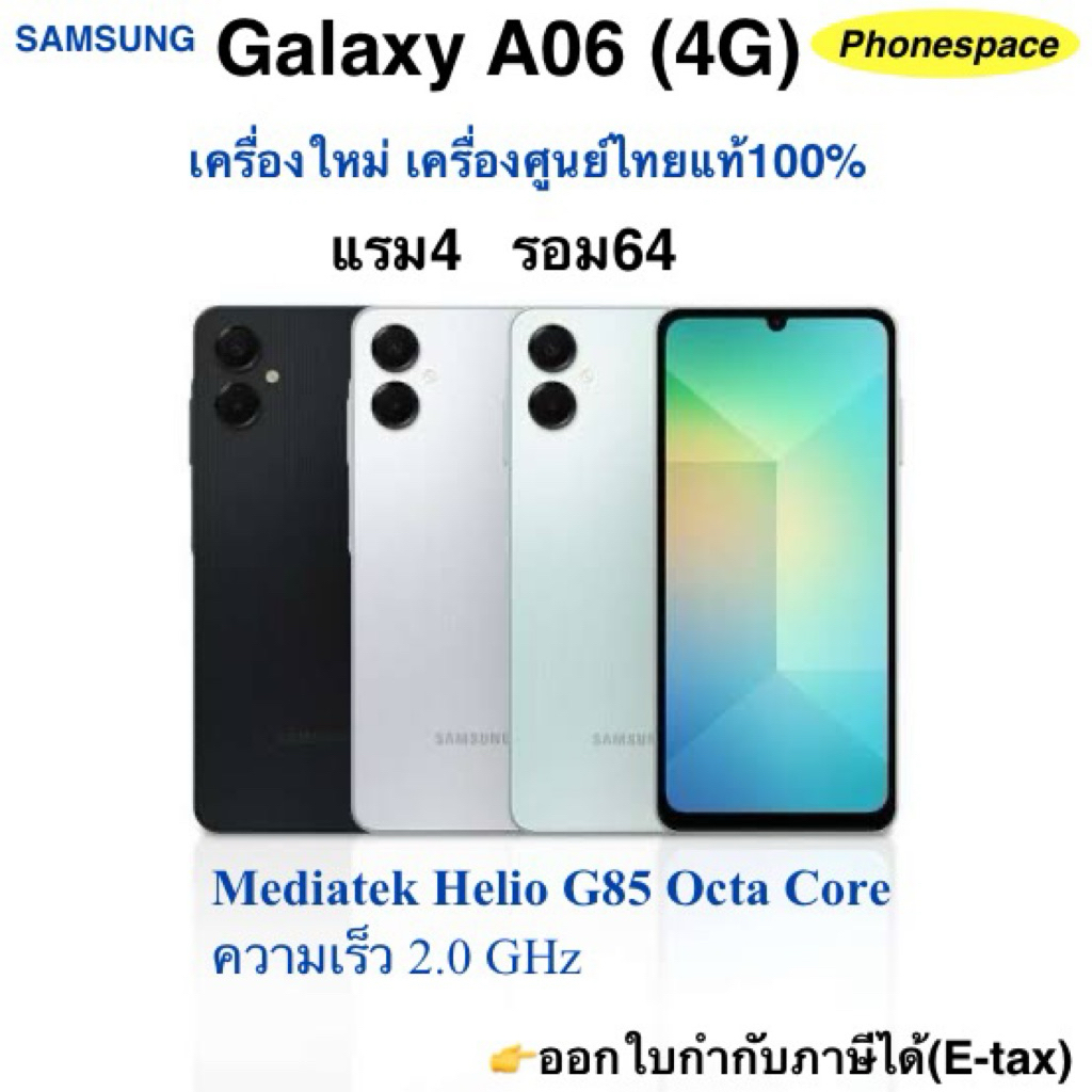 Galaxy A06 (4G)แรม4 รอม 64 เครื่องใหม่เครื่องศูนย์ไทยแท้ ล็อตเคลียร์จากศูนย์ ประกันร้าน 3 เดือน ผ่อนSplayleter/Cr