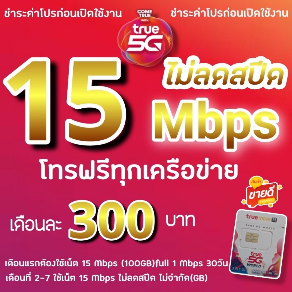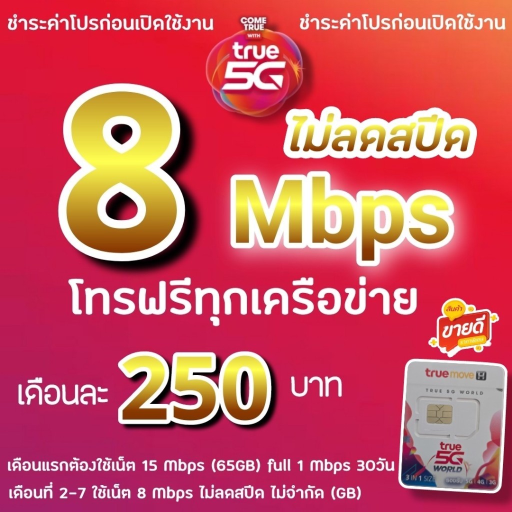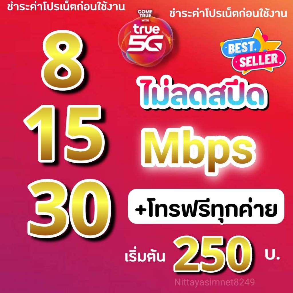 (ชำระค่าโปรเน็ตก่อนใช้งาน)โปรเทพซิมทรู โปร 8/15/30 Mbps ไม่ลดสปีด +โทรฟรีทุกค่ายไม่อั้น(จำกัดทั้งร้านไม่เกิน 1ซิมค่ะ)