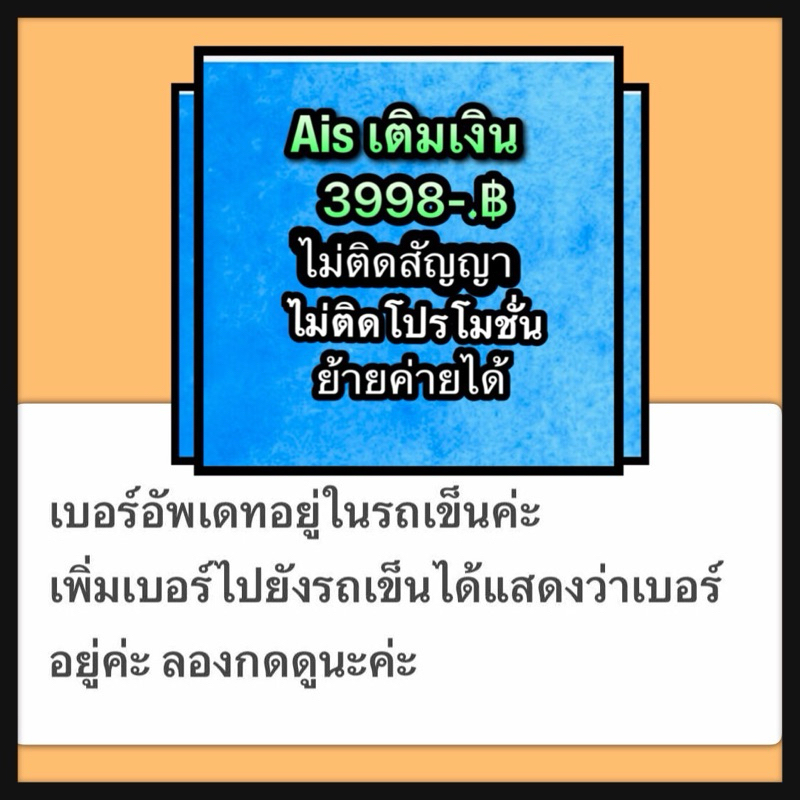Aisเติมเงิน3998(ชุด1)ไม่ติดสัญญาไม่ติดโปรย้ายค่ายได้
