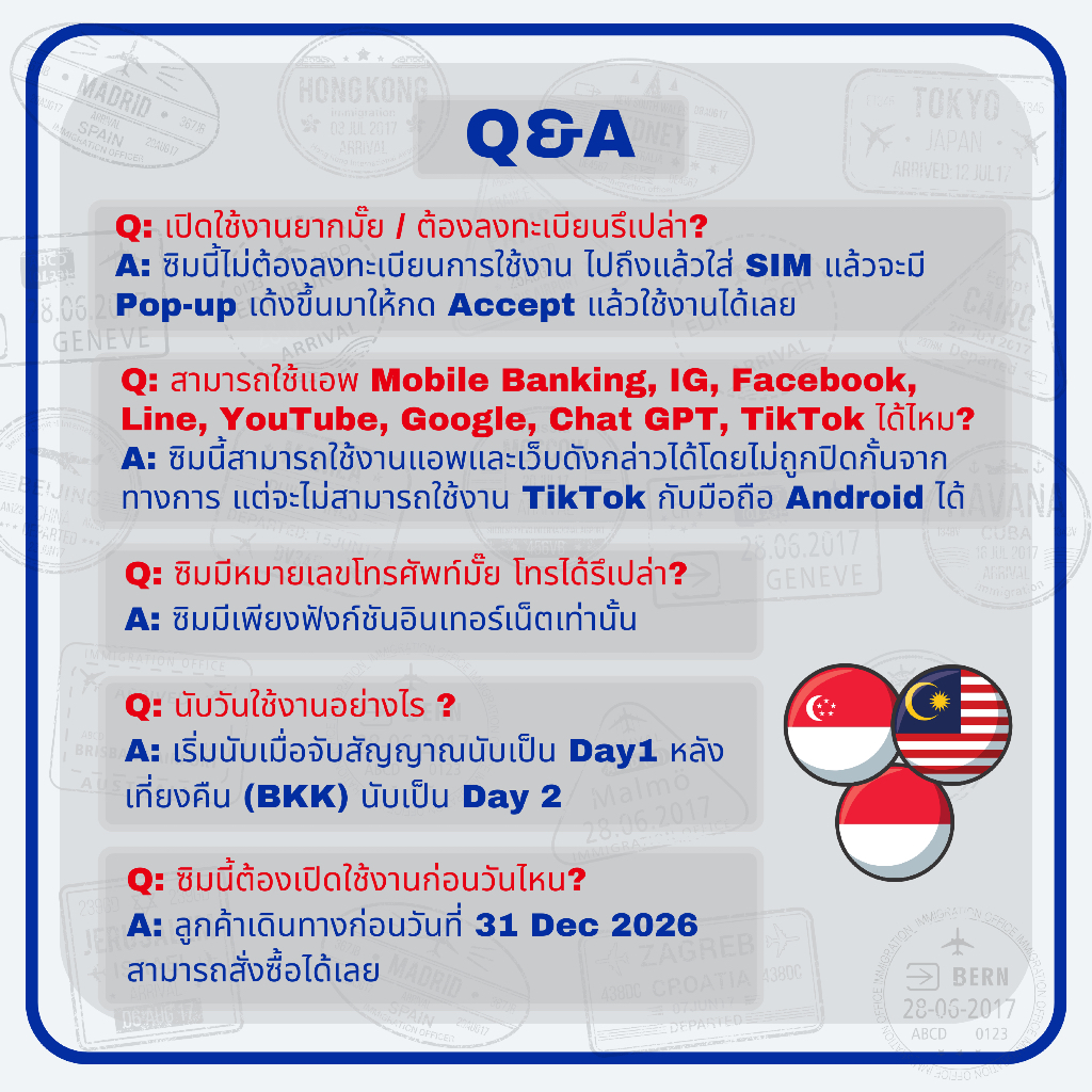 Singapore, Malaysia & Indonesia SIM ซิมสิงค์โปร, มาเลเซีย & อินโด 3-12 Days 4G/5G Max speed limit/ day