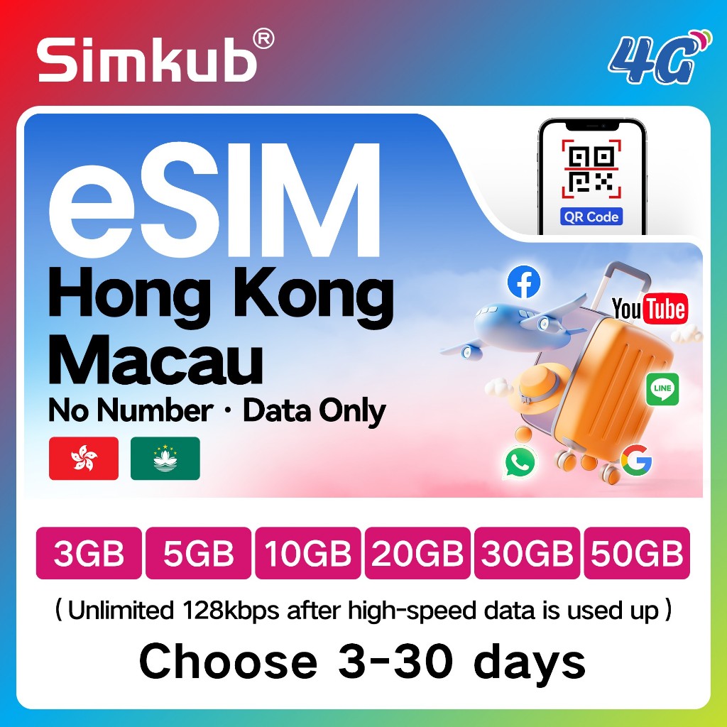 eSIM Hong Kong&Macau ใช้ร่วมกัน 2 แห่ง ซิมท่องเที่ยว ฮ่องกง มาเก๊า เน็ต 3-50GB รองรับ 4G เลือกได้ 3-30 วัน