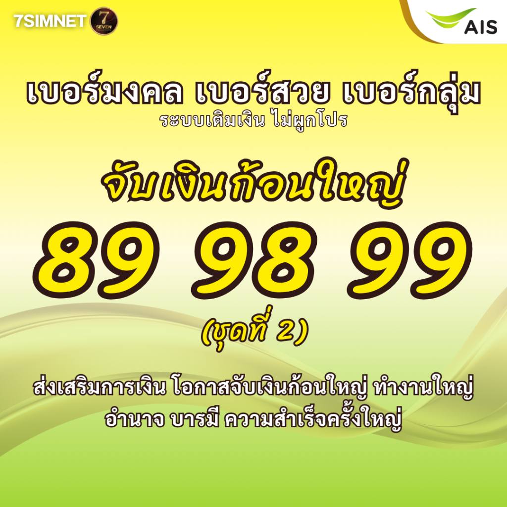 เบอร์มงคล จับเงินก้อนใหญ่ 89 98 99 A+ เสริมโอกาส เบอร์มงคล เบอร์คัด เบอร์สวย เติมเงิน AIS ชุดที่2