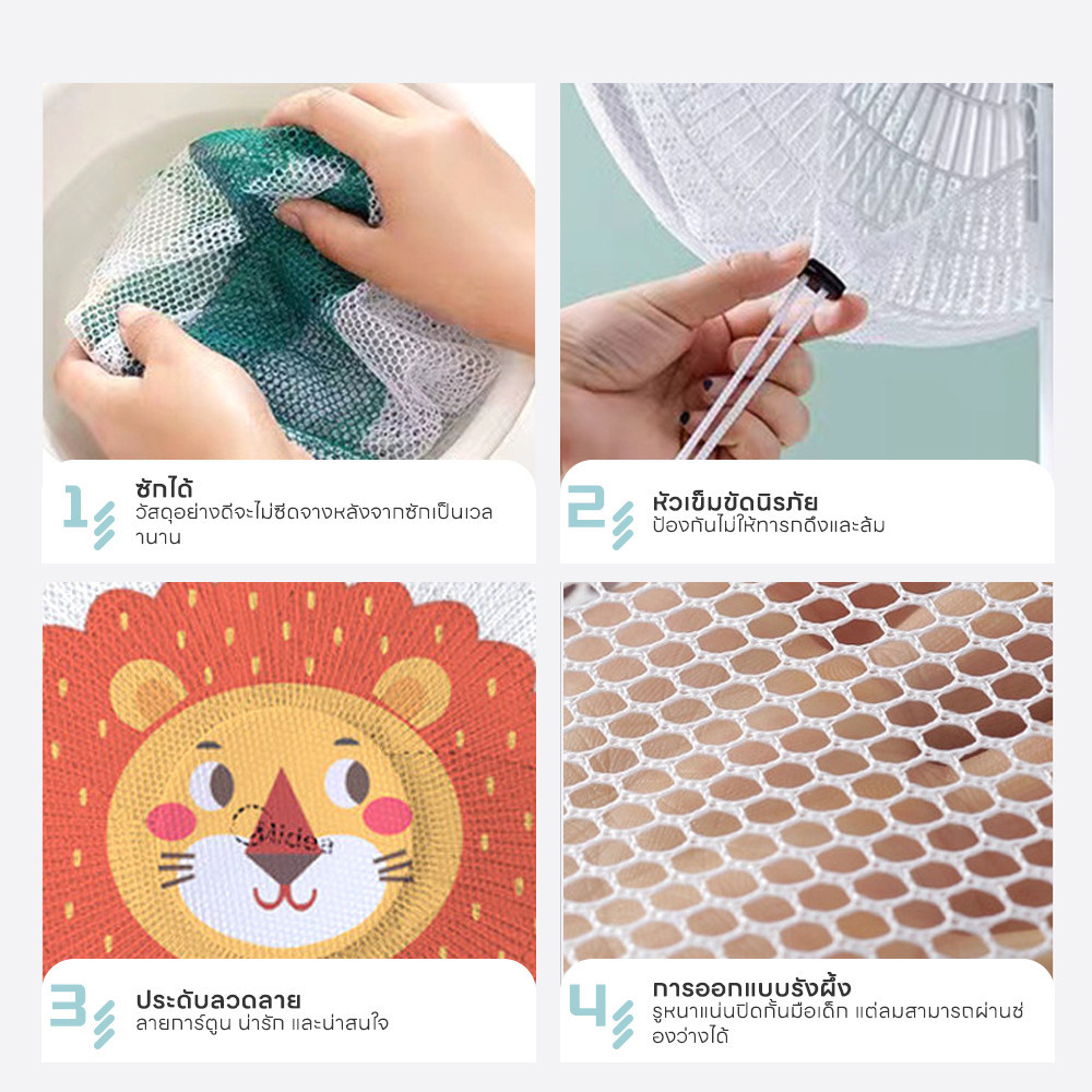 JOYOBABY ฝาครอบพัดลมไฟฟ้าป้องกันการหนีบสำหรับเด็ก ตาข่ายป้องกัน ลายน่ารักๆ สิงโต ไดโนเสาร์ หมี