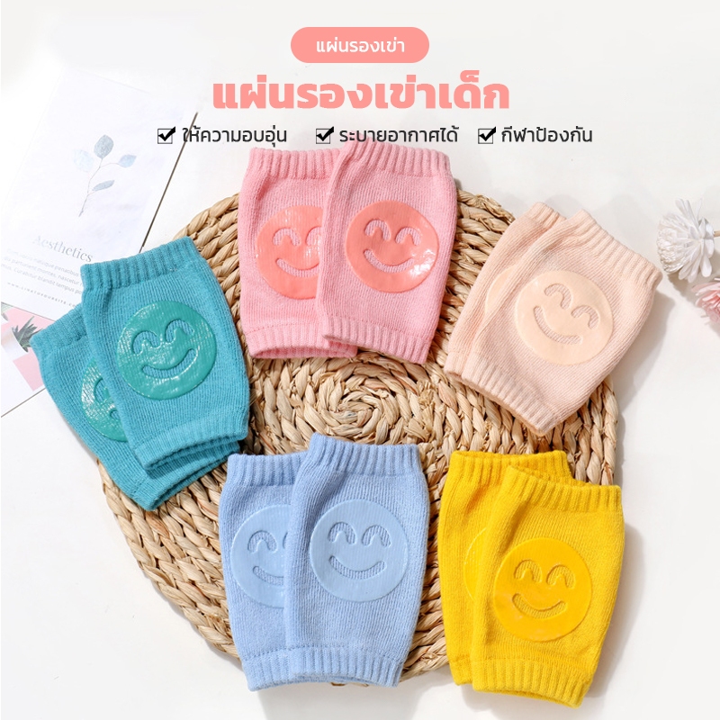 สนับเข่าเด็ก แผ่นรองเข่าเด็ก สนับเข่าเด็กวัยคลาน ผ้าฝ้าย ผ้านิ่ม รูปแบบหน้ายิ้ม กันลื่น ปกป้องหัวเข่าของลูกน้อย 1คู่【5ส】