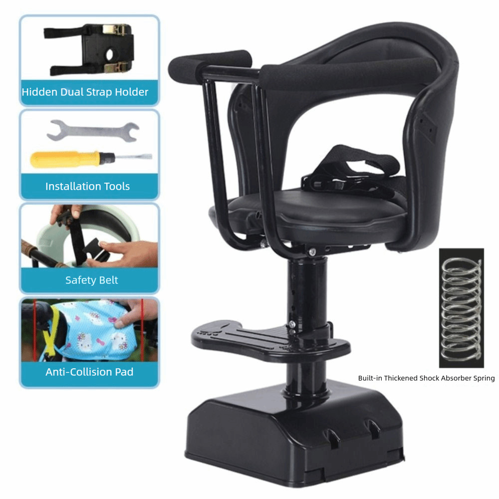 อ่อน สกู๊ตเตอร์ไฟฟ้าที่นั่งเด็ก, เหล็กคาร์บอนออกแบบกันลื่นที่นั่งจักรยานติดตั้งด้านหน้า, ความปลอดภัยแบบพกพาส่วนที่เหลือเท้าด้านหน้าติดเด็กจักรยานรถจั