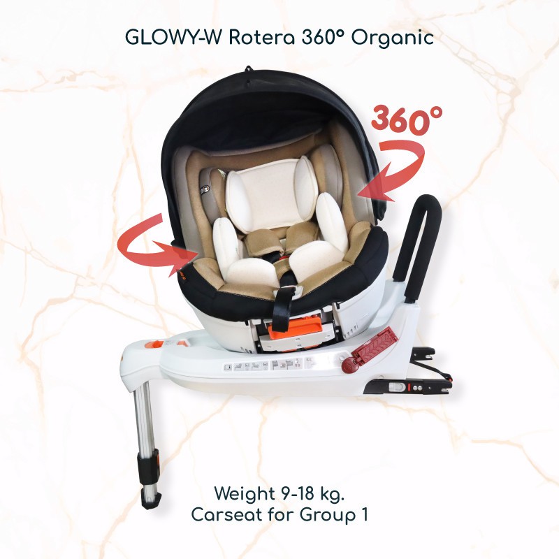 GLOWY W Rotera 360 Canopy Organic Carseat คาร์ซีทรุ่น Rotera 360 ( 0ถึง 18 กก.)